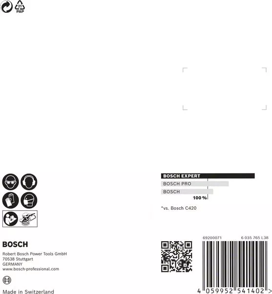 - Text s tvrzením o výkonnosti: Až 2× rychlejší než brusný papír Bosch C420