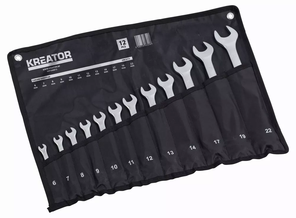 Sada klíčů očko/otevřený 6-22mm 12ks v kapse Kreator KRT500012