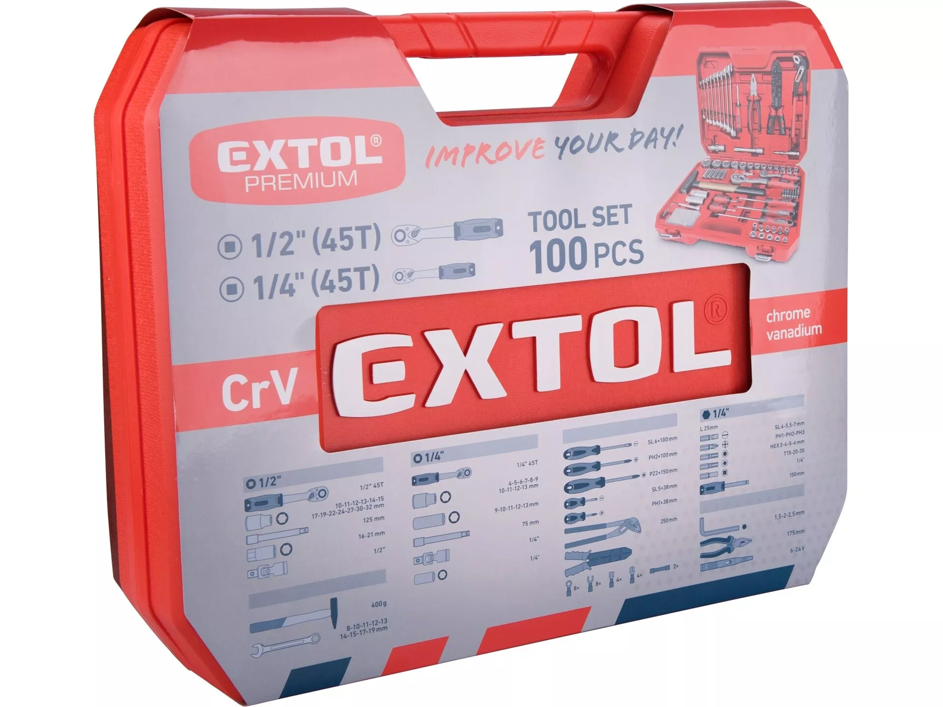 Sada nářadí 100ks, 1/4", 1/2", crv EXTOL PREMIUM 8818411