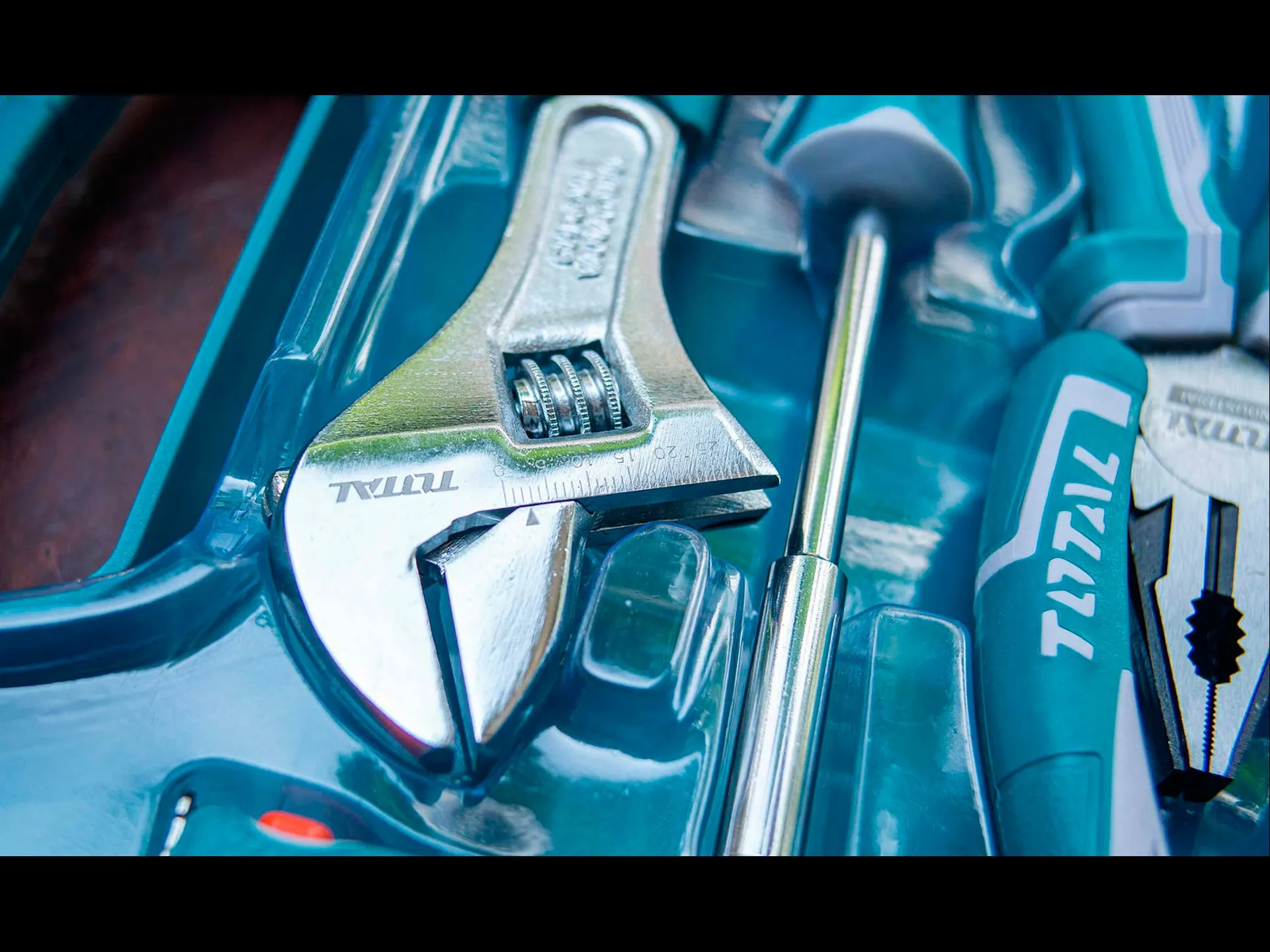 - Kleště: kombinované 180mm, štípací boční 160mm, půlkulaté přímé 160mm, SIKO 250mm