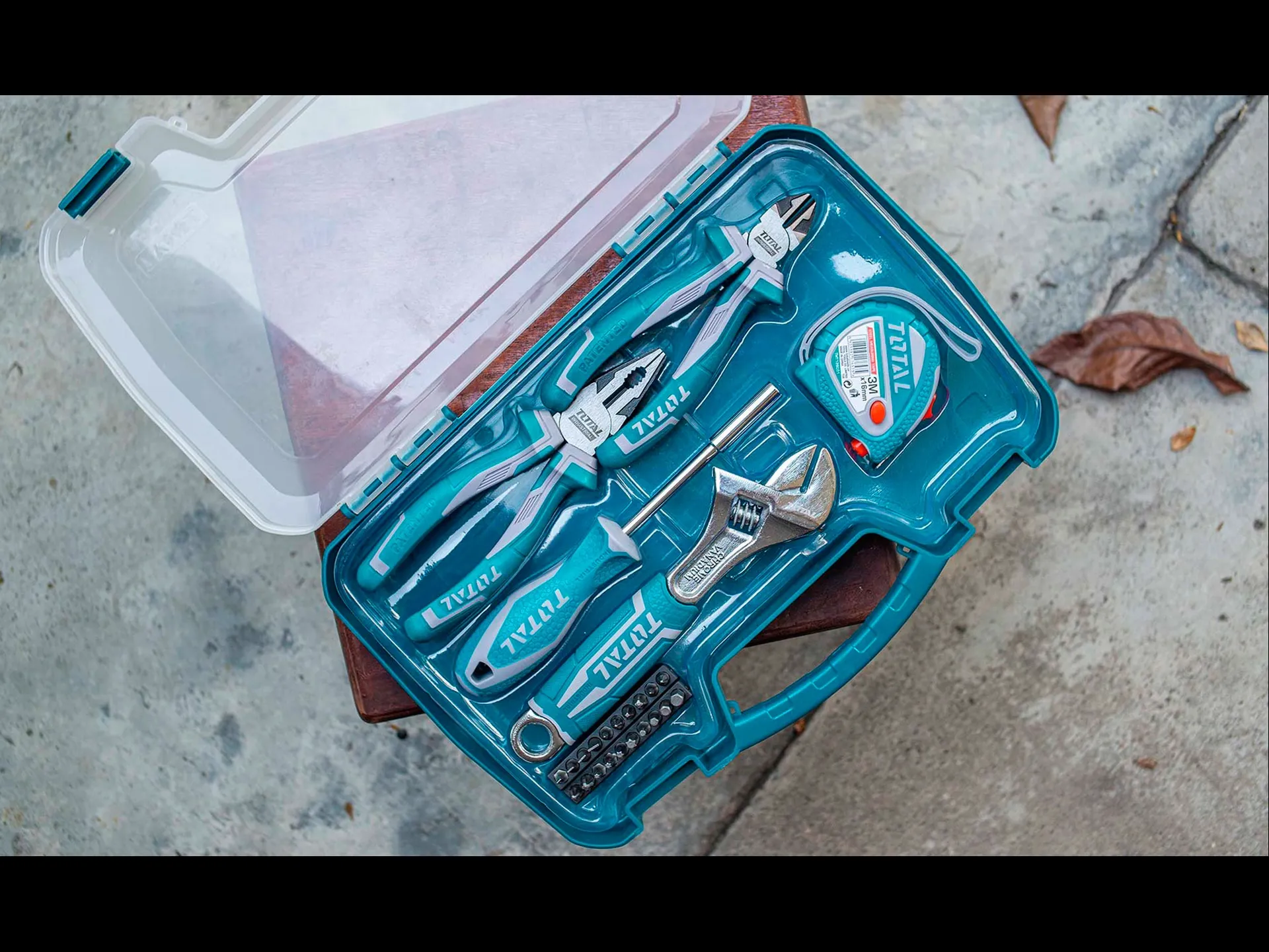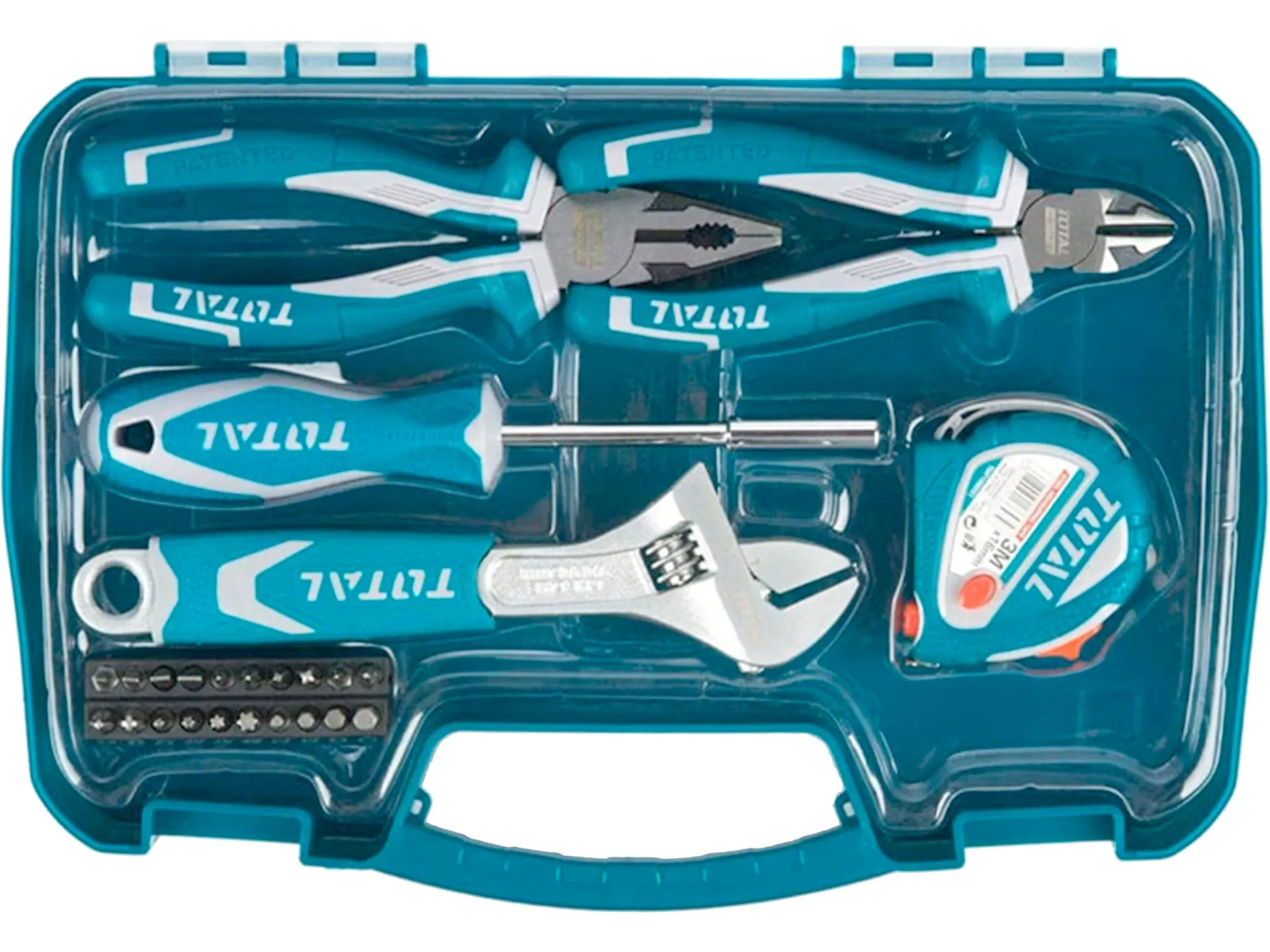 - Jednoduchá sada pro domácí použití. Kvalitní CrV ocel. Obsahuje kombinované kleště, štípací kleště, metr, nastavitelný klíč a šroubovák jako držák na sadu hrotů.