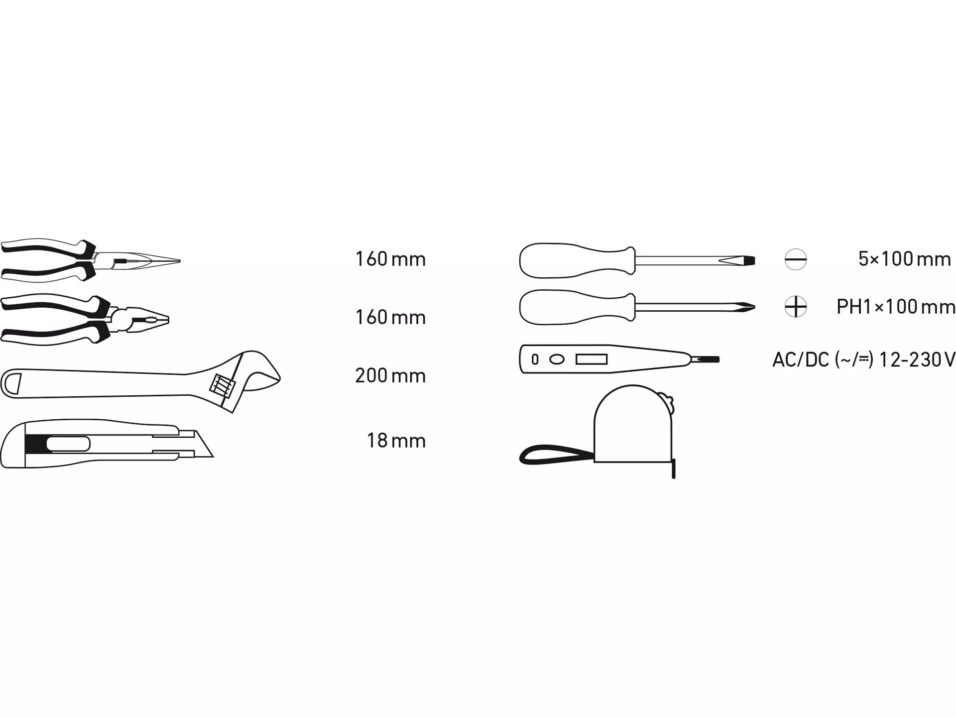 - Kleště: kombinované 160mm, půlkulaté rovné 160mm