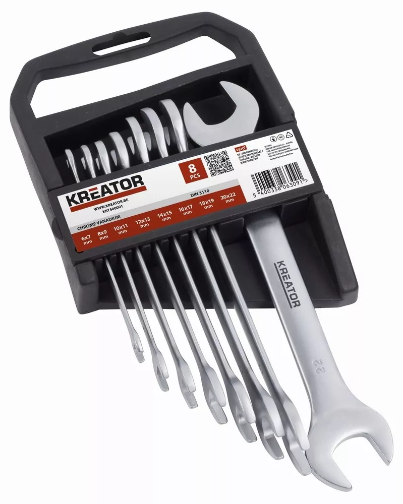 Sada oboustranných otevřených klíčů 6-22mm - 8ks Kreator KRT500001