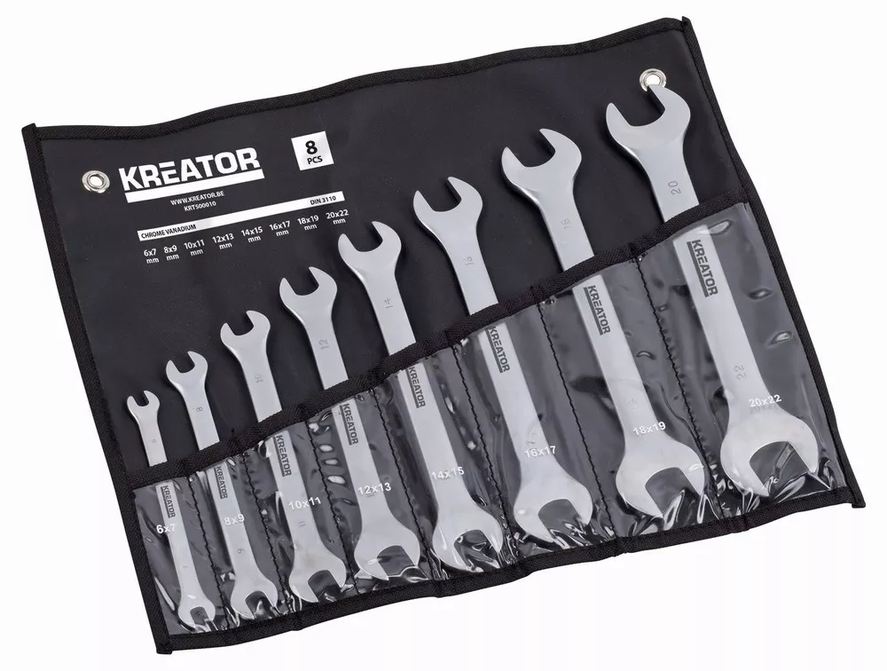 Sada oboustranných otevřených klíčů 6-22mm - 8ks v kapse Kreator KRT500010