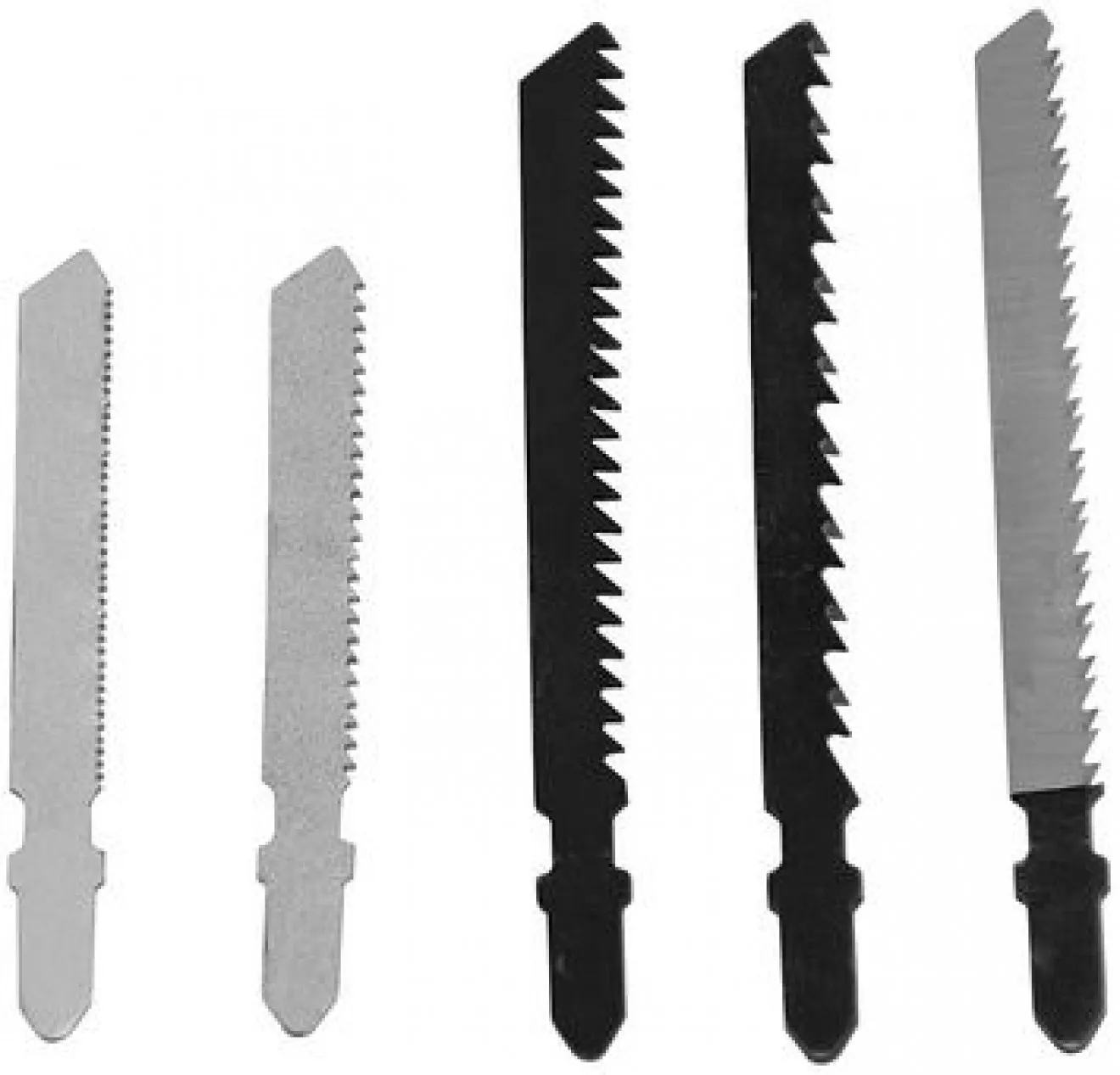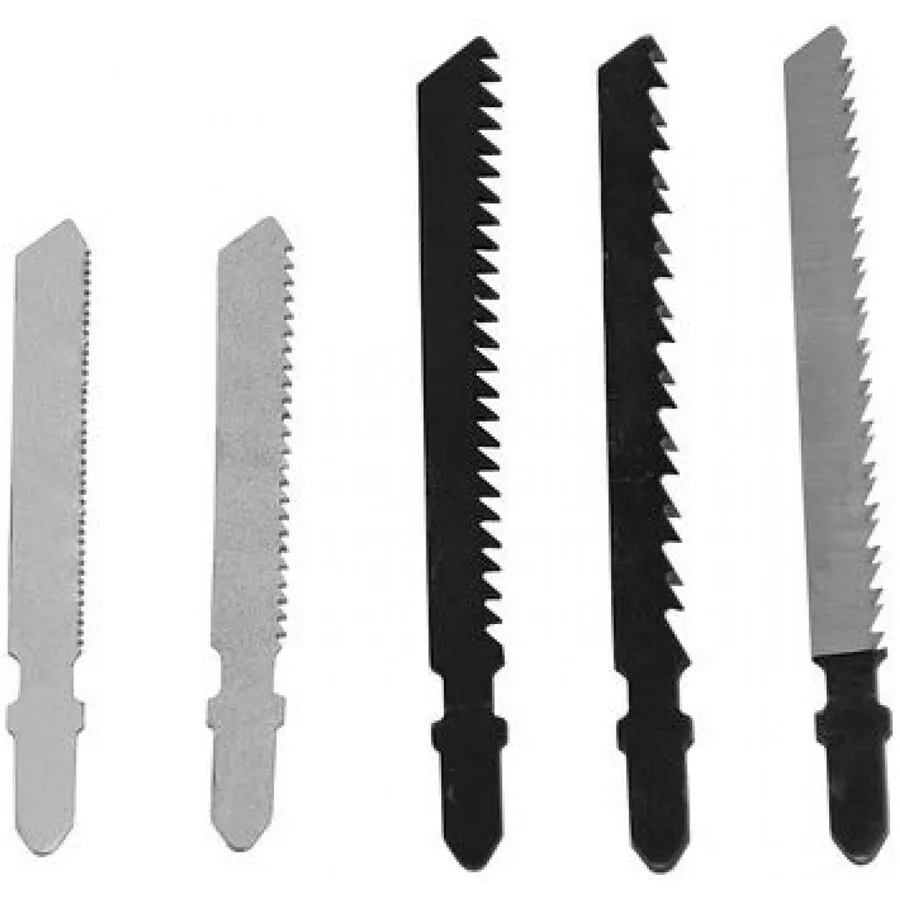 - Délky listů - 3 x 75 mm (dřevo, PVC), 2 x 67 mm (železo) vhodné pro přímočaré pily.