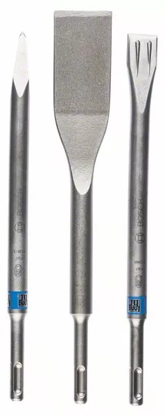 - Sada sekáčů a špičáků SDS plus (3 ks) obsahuje plochý sekáč, špičatý sekáč a sekáč na dlaždice pro širokou škálu renovačních a sanačních prací s různými materiály.