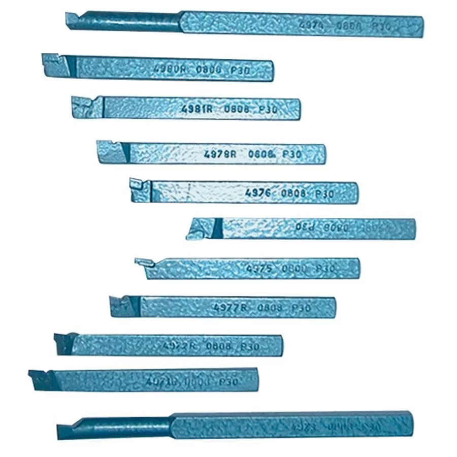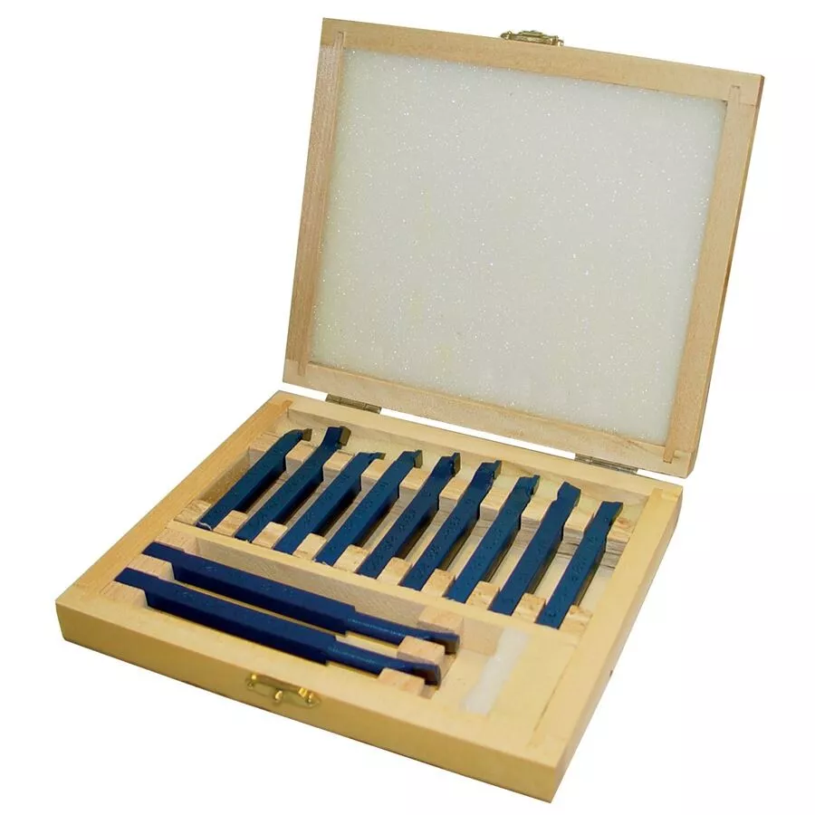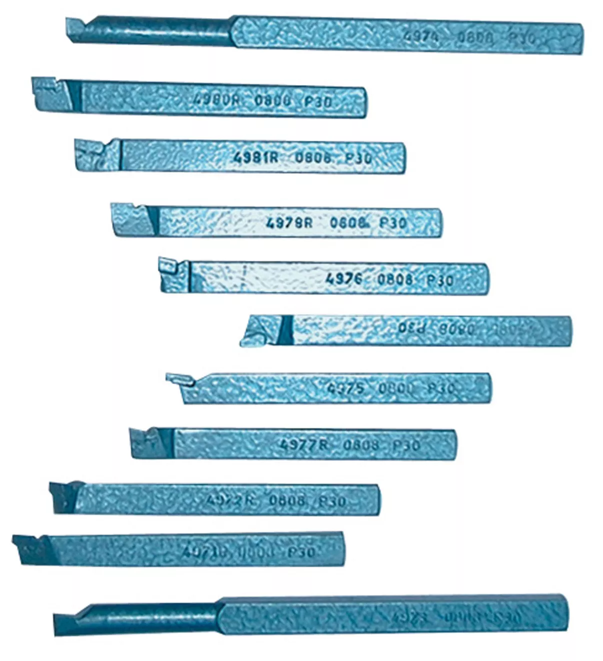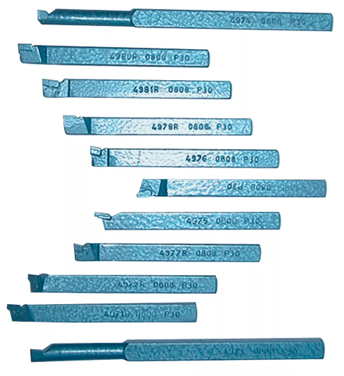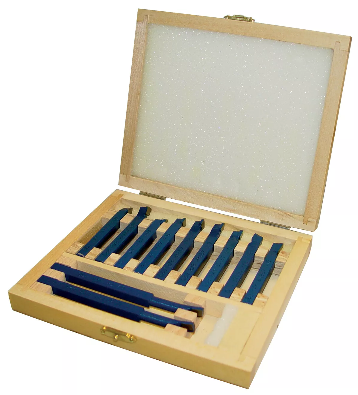- Složení soupravy: soustružnický nůž ubírací pravý (DIN 4971R), ubírací ohnutý pravý (DIN 4972R), vnitřní ubírací pravý 75° (DIN 4973R), vnitřní ubírací pravý 90° (DIN 4974R), ubírací špičatý (DIN 4975), ubírací (DIN 4976), ubírací čelní pravý (DIN 4977R), rohový.