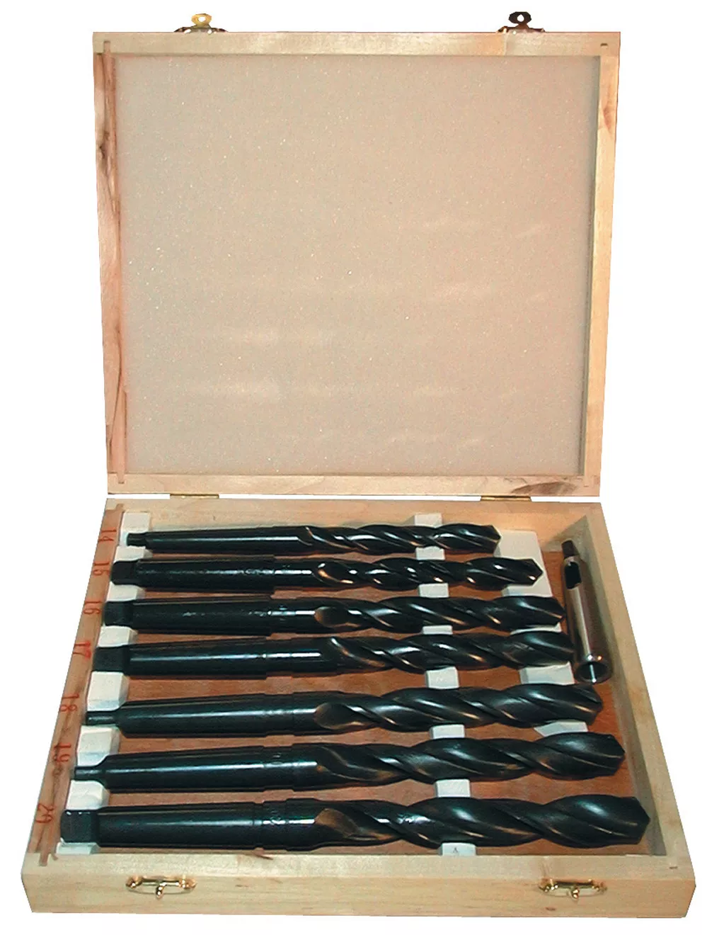 - Souprava válcovaných vrtáků s kuželovou stopkou MK 2, určených k vrtání oceli, legované/nelegované lité oceli, ocelolitiny, litiny,