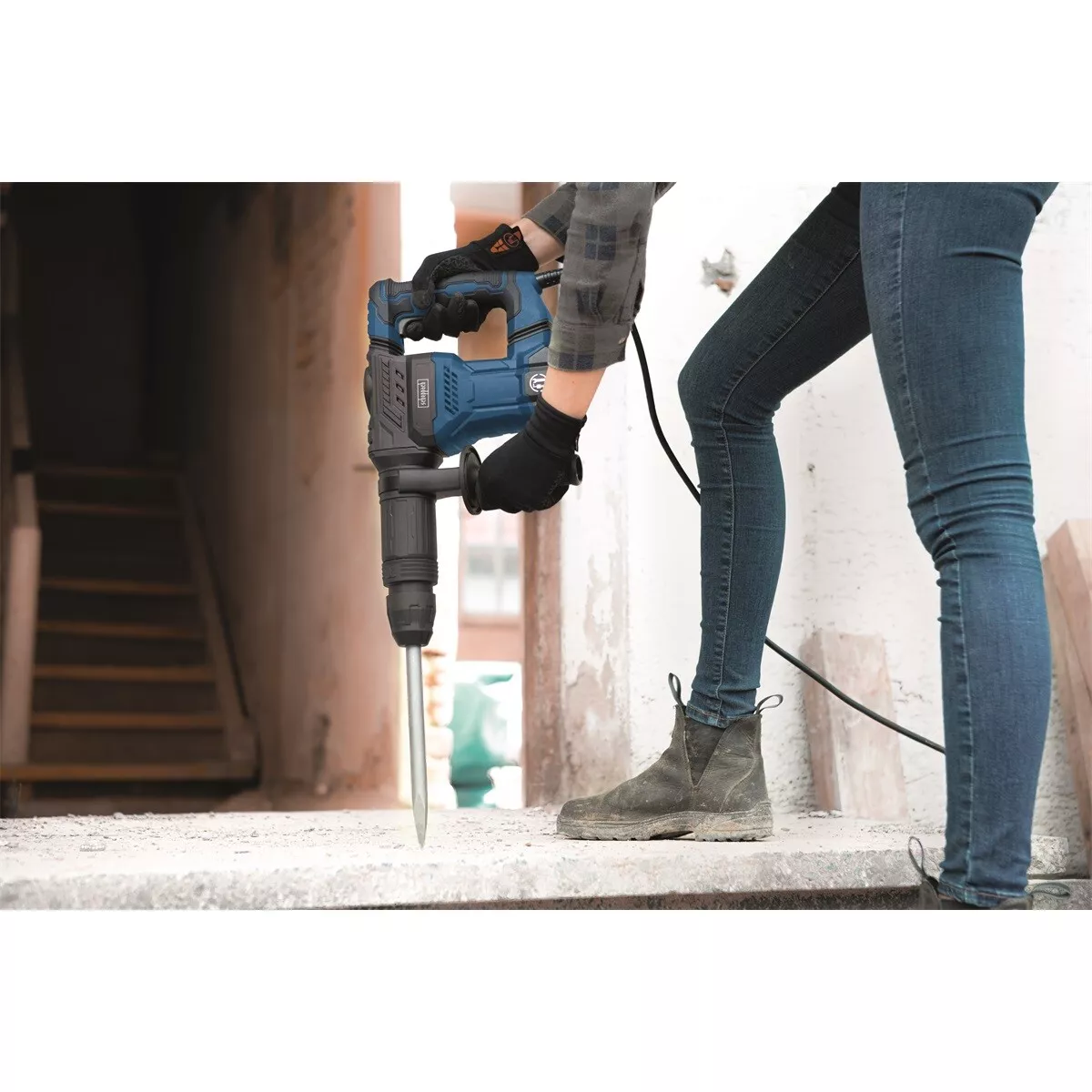 - Moderní bourací kladivo Scheppach AB 1500 X je z nové generace lehkých a kompaktních demoličních kladiv s vysokou silou úderu 20 J. Velkou výhodou nízké váhy je tedy snadná manipulace s kladivem i při práci v horizontální poloze. Kladivo je primárně určeno pro bourací a demoliční práce v soukromém sektoru, ale díky mnoha profesionálním komponentům zvládne i mnohem těžší nasazení. Štíhlý tvar těla stroje dovoluje pracovat i ve stísněných podmínkách. Síla úderu 20 J je dána vyspělým systémem úderníku a je dostatečná pro většinu bouracích prací, např. při stavbě či rekonstrukci domu nebo bytu. Důkladné těsnící prvky zase velmi dobře chrání před prachem a výrazně zvyšují životnost celého vnitřního ústrojí. Zvláště při delším použití jsou výrazným komfortním prvkem měkčené a protiskluzové zóny na rukojeti a její antivibrační odpružení. Upnutí systémem SDS Max zajistí snadnou, rychlou a pohodlnou výměnu nástroje. Stroj se standardně dodává s pevným plastovým kufrem, přídavnou otočnou rukojetí a dvěma sekáči.