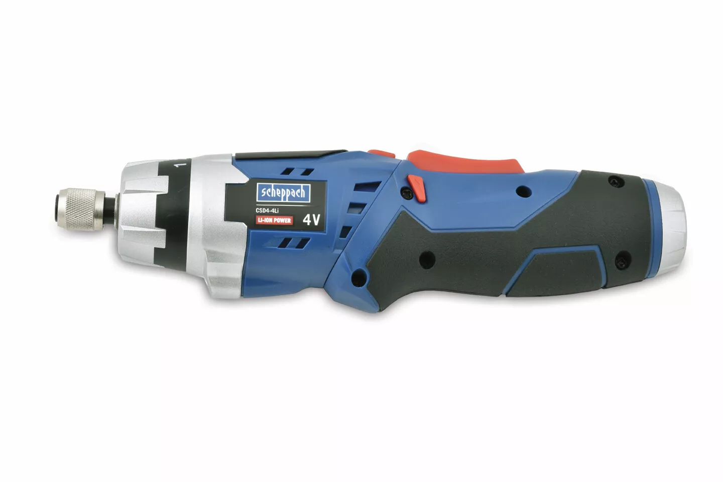 - Scheppach CSD4-4Li je ideální akumulátorový šroubovák pro menší vrtací a šroubovací práce v dílně nebo domácnosti, jako je například sestavování nábytku. Má dvě polohy rukojeti, takže se dostanete i do stísněných prostor. Rukojeť má protiskluzové zóny. Pracovní plocha je osvětlená jasným LED osvětlením. Výměna nástrojů je rychlá díky modernímu rychloupínacímu sklíčidlu. Stupně utahovacího momentu se dají nastavit v šesti stupních, takže máte vždy ideální nastavení podle druhu materiálu, se kterým pracujete. Samozřejmostí je možnost přepnutí na pravý a levý směr otáčení. O pohon se stará kvalitní akumulátor 4V. Indikace stavu jeho nabití je na vrchní části stroje. Stroj se dodává včetně sady 30 bitů.