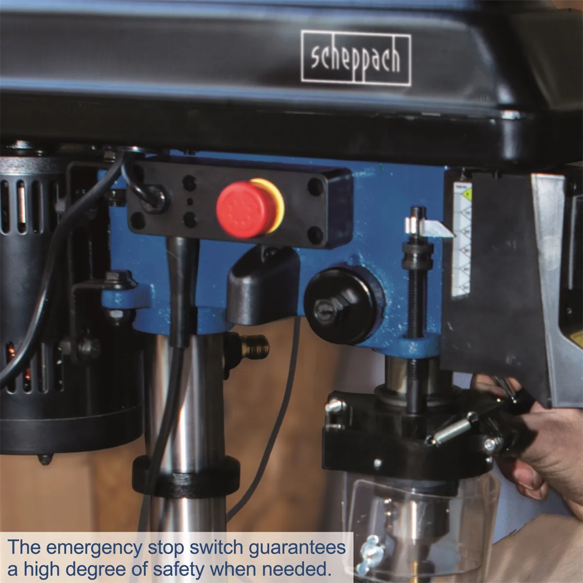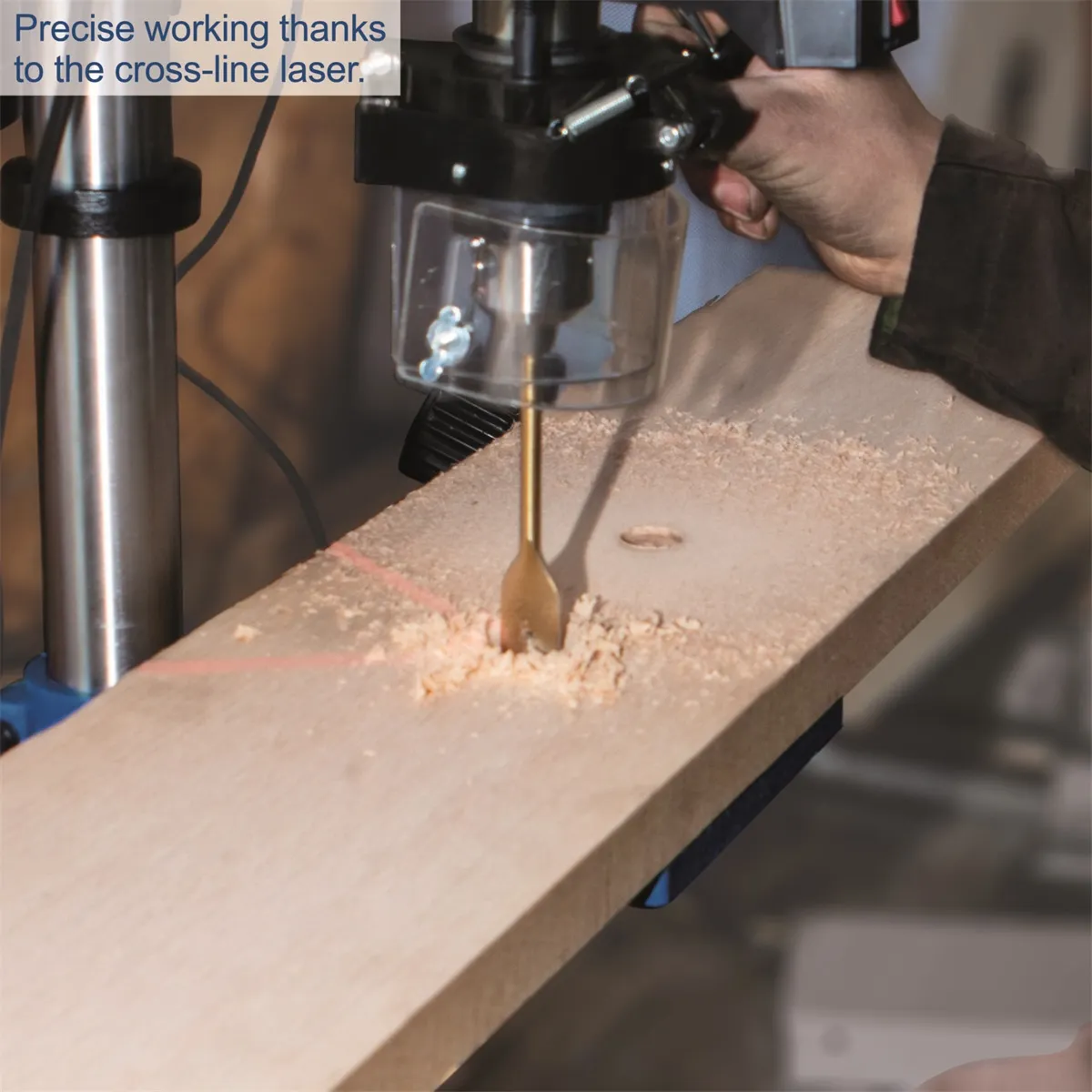 - • Stojanová vrtačka Scheppach DP 16 SL je výborně vybavený model vhodný hlavně pro náročné kutily, do dílen ap. Zásadní odlišností od ostatních modelů je křížový laser, který umožní velmi snadnou orientaci při vrtání a urychlí práci při vrtání větších sérií obrobků. Stroj má robustní konstrukci z odolné litiny, sklíčidlo 13 mm ve standardu, pět stupňů rychlosti pro práci s tvrdým a měkkým dřevem, kovy i plasty, svěrák pro přidržení obrobku na pracovním stole a silný motor 550 W, který si poradí s jakýmkoliv materiálem. Stroj samozřejmě splňuje poslední požadavky evropské unie na bezpečnost, jako je např. hlavní vypínač umístěný na čele stroje, průhledný kryt sklíčidla ap. Stroj je umístěn na stabilním podstavci s možností pevného uchycení šrouby k pracovní desce nebo podlaze.