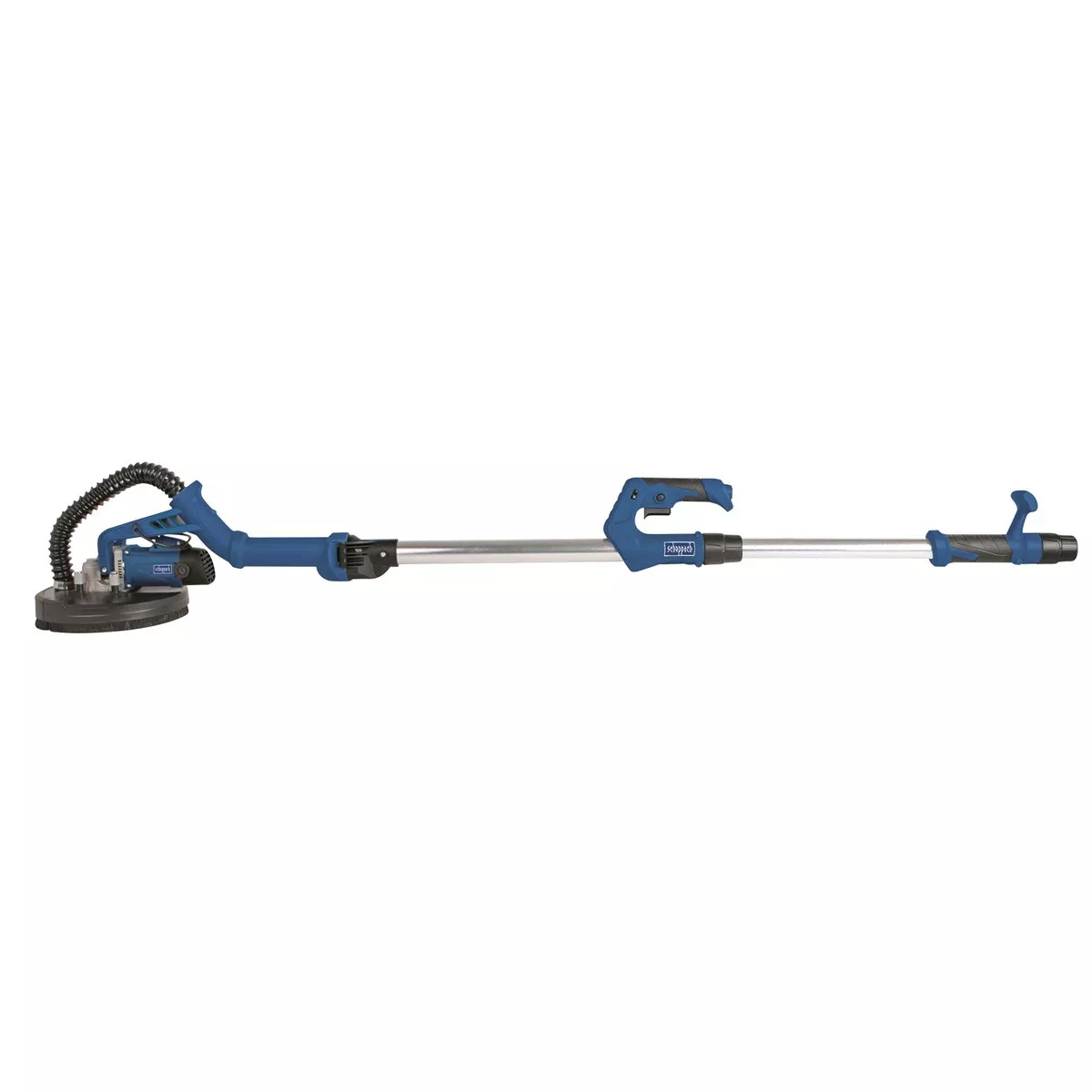 - Broušení sádrokartonových či polystyrénových desek, příprava povrchu před lakováním nebo leštěním a další podobné práce na větších plochách jsou obvykle velmi zdlouhavé a namáhavé. Díky kvalitní brusce Scheppach DS 920 s dlouhým krkem a velkou brusnou plochou (tzv. žirafa) nyní můžete svůj úkol dokončit mnohem rychleji. Protože různé materiály vyžadují různou rychlost broušení, je bruska vybavena nastavitelnou rychlostí. Abyste dosáhli až ke stropu a do špatně přístupných míst, je bruska vybavena prodlužovací teleskopickou rukojetí, díky které se délka stroje prodlouží až na 170 cm. Výměna brusného papíru pomocí systému suchého zipu je velmi jednoduchá a rychlá. Ergonomický tvar brusky a měkčené protiskluzové zóny držadla umožňují pohodlnou práci po dlouhou dobu. Bruska DS 920 se dodává s příslušenstvím, které obsahuje 6 brusných papírů o různé zrnitosti, 4 m odsávací hadice a dvě redukce na připojení běžných rozměrů hubic vysavačů. Díky možnosti odsávání se výrazně redukuje prašnost při samotném broušení.Stroj jde snadno rozložit na tři části a nezabere tak mnoho místa při skladování a lze ho snadno převézd i v kufru automobilu
