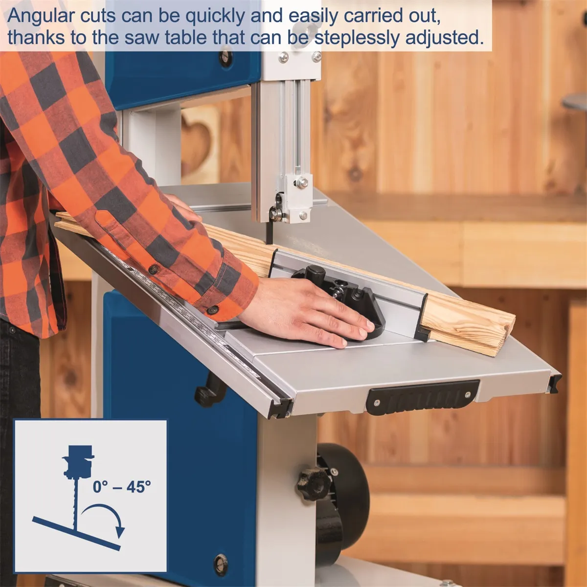 - Dlouhé přímé řezy, oblouky, řezy pod úhlem, složené řezy, vše zvládá pila s přehledem. Díky nastavení rychlosti pásu a velmi silnému motoru, můžete pracovat s rozličnými materiály –měkké či tvrdé dřevo, polystyren, plast ap. Díky možnosti připojení odsávání se výrazně potlačí prašnost ve vaší dílně. Pro ještě příjemnější práci v ideální výšce je stroj standardně vybaven pevným ocelovým podstavcem. Dodává se s druhým náhradním pilovým pásem a úhelníkem pro řezání pod úhly.