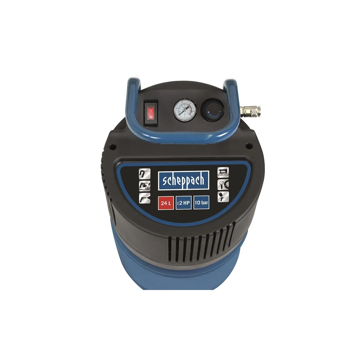 - Vertikální kompresor Scheppach HC 24 V je prostorově velmi úsporný stroj, který má díky použití moderního motoru s bezolejovou technologií rovněž minimální nároky na údržbu. To ho staví do role ideálního kompresoru pro běžné domácí využití a do stísněných dílen a garáží. Tlaková nádoba slouží jako zásobárna stlačeného vzduchu a motor se tak zapíná jen v případě, že tlak vzduchu klesne pod požadovanou úroveň. Díky vzdušníku můžete s kompresorem provádět i náročnější operace, než je běžné huštění. Můžete k němu připojit třeba sponkovačku, stříkací pistoli (airbrush), ofukovací pistoli a další vzduchové nářadí. Při dofukování pneumatik zase oceníte jednoduché nastavení výše tlaku, který můžete snadno kontrolovat pomocí vestavěného manometru. Díky bezolejové technologii se dobře hodí i k udržování tlaku v pivních sudech. Přídavná rukojeť, nízká hmotnost a kompaktní rozměry umožní snadnou manipulaci se strojem. Podmínky prodloužené záruky naleznete zde.Případné bezpečnostní pokyny, výstrahy a upozornění jsou součástí návodu k obsluze, který je k dispozici v sekci KE STAŽENÍ.