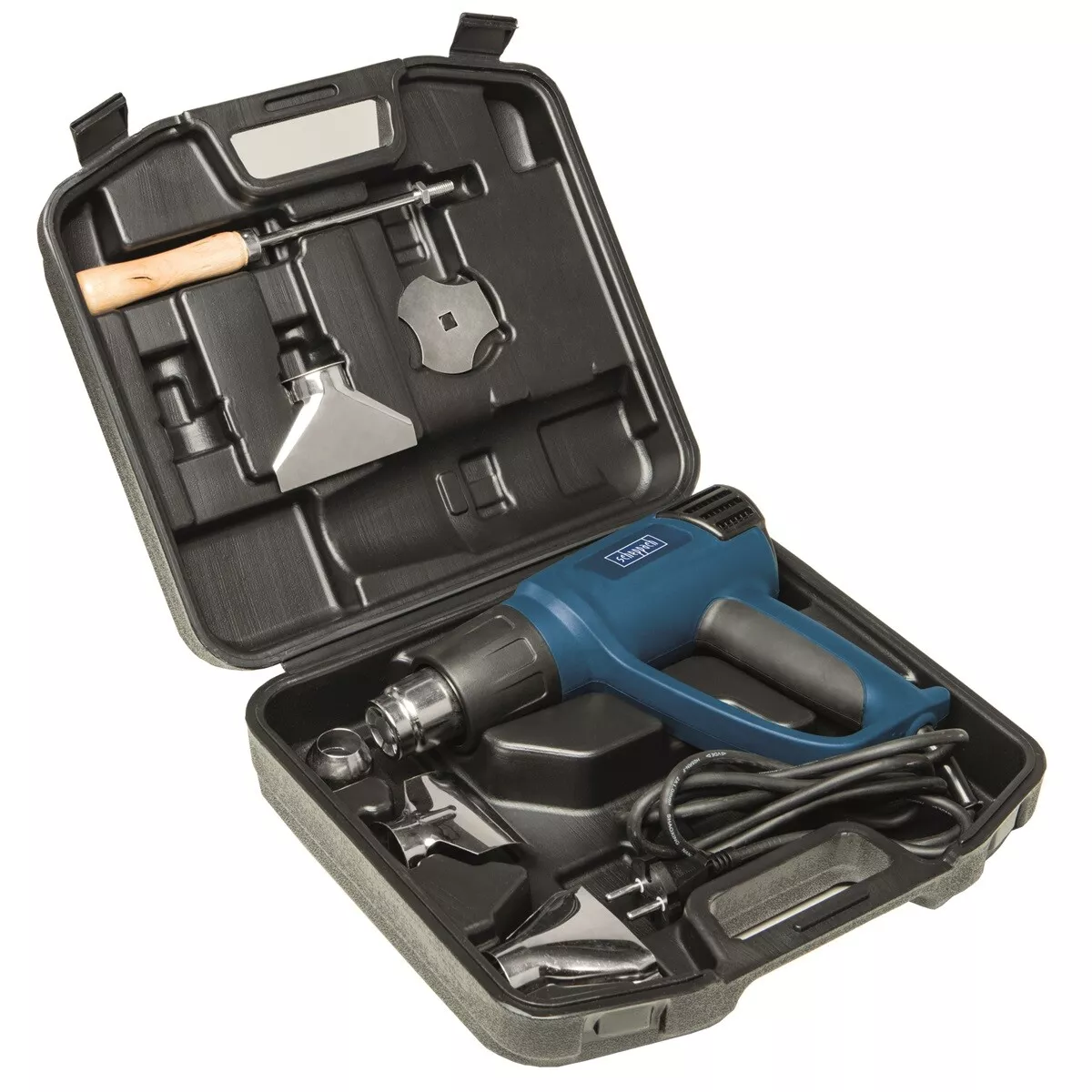 - Scheppach HG 1800 je lehká univerzální horkovzdušná pistole vhodná na široké spektrum použití. Díky možnostem nastavení teploty a průtoku vzduchu do dvou stupňů je vhodná k odstraňování laků, barev, nálepek, tvarování umělých hmot, smršťování fólií, svařování, upevňování pásků na hrany, uvolňování lepených spojů, rozmrazování zamrzlých trubek nebo sušení. Díky kvalitnímu topnému tělesu, promyšlenému chlazení, tepelné ochraně a kvalitnímu motoru o výkonu 1800 W je zajištěna dlouhá životnost stroje. Ergonomická rukojeť je vybavena příjemnou protiskluzovou vrstvou a je uzpůsobena k odložení pistole do vertikální polohy, nutné pro odložení rozehřáté pistole. Horkovzdušná pistole se dodává v praktickém plastovém kufru s bohatým 5-ti dílným příslušenstvím.