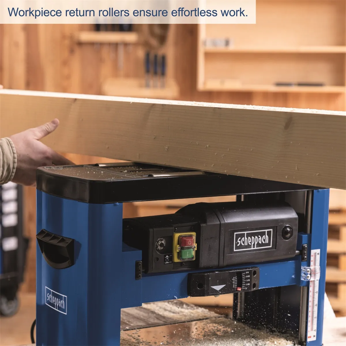 - Scheppach PLM 1800 je moderní výkonná protahovačka na dřevo. Chytrý kompaktní design minimalizuje prostorové nároky v dílně a usnadňuje transport stroje. Robustní konstrukce zvládá bez problémů práci s hranoly o šířce až 330 mm a výšce 152 mm. Silný motor 1500 W spolu se dvěma ocelovými noži rotujícími rychlostí 8500 ot./min. se starají o velmi čistý a přesný řez, což v praxi znamená ještě jemnější opracování plochy. O posun dřeva se stará robustní mechanismus s rychlostí pojezdu 7,4 m/min. Nože jdou velice snadno vyměnit a celé ovládání stroje je velmi jednoduché a komfortní. Výšku nastavíte jednoduše pomocí optické stupnice a otočného ovladače na horní straně protahovačky. Na přesnosti opracování se podílí i velmi kvalitní ocelový hoblovací stůl s možností prodloužení. Samozřejmostí jsou i transportní madla a prachuodolný bezpečnostní spínač. Stroj získal mnoho prestižních ocenění, jako například vítěz kategorie nejlepší nákup ve World Tools Awards.Případné bezpečnostní pokyny, výstrahy a upozornění jsou součástí návodu k obsluze, který je k dispozici v sekci KE STAŽENÍ.