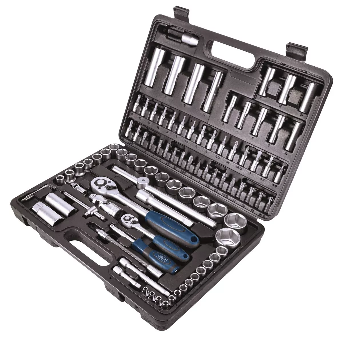- 15x nástrčný ořech 1/2: 10; 11; 12; 13; 14; 15; 16; 17; 18; 19; 20; 21; 22; 23; 24 mm, (délka 38 mm); 27; 30; 32 mm (délka 42 mm), 4x nástrčný ořech prodloužený 1/2: 14; 15; 17; 19 mm (délka 76 mm), 13x nástrčný ořech 1/4: 4; 4.5; 5; 5.5; 6; 7; 8; 9; 10; 11; 12; 13; 14 mm (délka 25 mm), 8x nástrčný ořech prodloužený 1/4: 6; 7; 8; 9; 10; 11; 12; 13 mm (délka 50 mm), ráčna 1/2: 72T (255 mm), ráčna 1/4: 72T (155 mm), T-vratidlo 1/4: (152,4 mm), šroubovák pro nástavce 1/4 150 mm, 2x prodlužovací nástavec 1/2: 125 mm; 250 mm, 2x prodlužovací nástavec 1/4: 50 mm; 100 mm, prodlužovací nástavec ohebný 1/4 150 mm, 2x nástavec na svíčky 1/2: 16; 21 mm, 2x nástavec kloubový: 1/2;1/4, adaptér: F3/8 x M1/2, bitový adaptér pro nástavec 1/4, adaptér 1/2 pro bity 5/16, 4x bity Torx: T40; T45; T50; T55, 3x bity křížové PH: PH3; PH4, 3x bity křížové PZ: PZ3; PZ4, 3x bity ploché: 8; 10; 12 mm, 4x bity šestihranné: 8; 10; 12; 14 mm, 6x nástavce Torx 1/4: T8; T10; T15; T20; T25; T30, 2x nástavec PH 1/4: PH1; PH2, 2x nástavec PZ 1/4: PZ1; PZ2, 3x nástavec plochý 1/4: 4; 5,5; 7 mm, 4x nástavec šestihranný 1/4: 3; 4; 5; 6 mm, 3x imbusový klíč: 1,5; 2; 2,5 mm