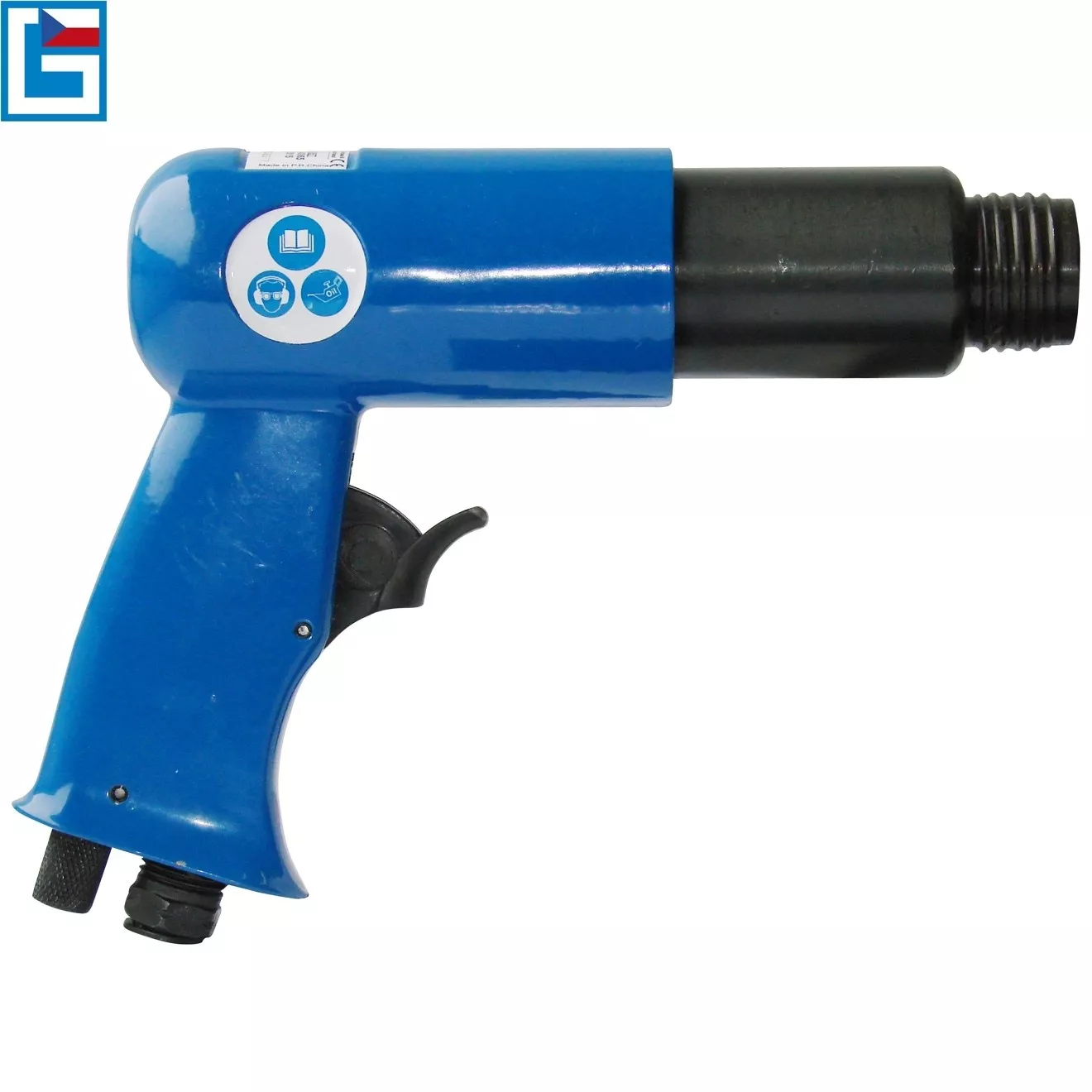 - dělení plechů v autodílnách apod.).Plynulé nastavení frekvence úderů pomocí stavěcího šroubu v rukojeti, jednoduché osazení nástrojů (-> rychloupínací pružina).Konstrukce: pistolová rukojeť se sítkem pro filtraci stlačeného vzduchu