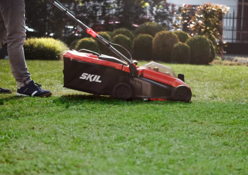 - Bezuhlíková akumulátorová sekačka na trávu SKIL 0130.