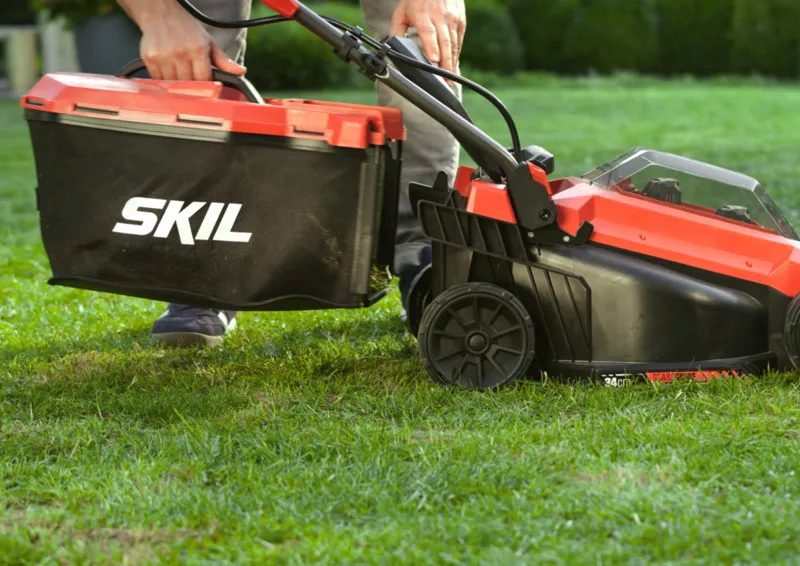 - Díky SKIL výjimečnému řešení „Easy Storage“ se rukojeti rychle a snadno zaklápějí i vyklápějí a sekačka po použití zabírá minimum místa.