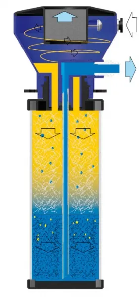 - Vícestupňová separace probíhá pomocí filtru a aktivního uhlí