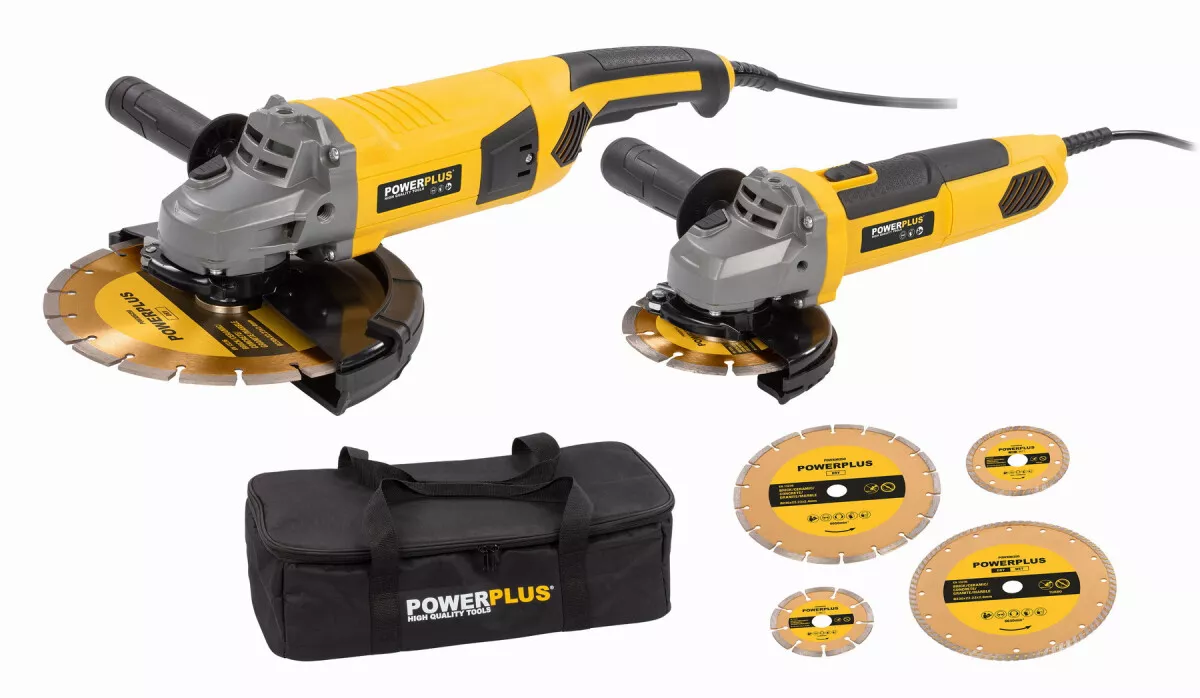 - Jedná se o sadu 2 úhlových brusek POWX06250 od PowerPlus, které můžete použít k řezání, broušení, odstraňování otřepů nebo odstraňování rzi z kovu a kamene.