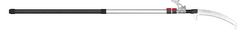- Všechny pily Silky s teleskopickou násadou mají pilový plát vyroben stejnou technologií jako menší pily. Teleskopická násada není kruhového průřezu, ale oválného. Tím se zásadním způsobem zvyšuje tuhost celého celku. Jednotlivé segmenty jsou vyrobeny z velmi pevné, ale lehké slitiny duralu a v dolní úchopové části je pila opatřena perfektní neklouzavou rukojetí ze speciální pryže – GOM. Jednotlivé výsuvné sekce jsou opatřeny promyšleným a lehce ovladatelným zámkem, který je dále zesílen speciálními svorkami. Díky tomuto důmyslnému systému se i plně vysunutá pila na rozhraní jednotlivých sekcí „neviklá“. Můžete tak pohodlně a s výbornou kontrolou pily, řezat i ve výškách dosahujících 8 metrů (Hayauchi).