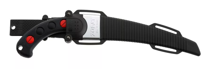 - Až na některé výjimky, kdy je rukojeť pil Silky vyrobena z ocele nebo hliníku, používá Silky na materiál rukojetí speciální pryž – GOM. Ta má několik zásadních výhod. Pocitově na dotyk je tento povrch velmi příjemný, i v chladném počasí příjemně hřeje a díky poddajnému povrchu Vás rukojeť netlačí ani po celodenní práci. Navíc neklouže ani ve zpocených rukou, což má zase příznivý vliv na vedení celé pily a tím i bezpečnost. Rukojeť také účinně pohlcuje vibrace, které při řezání vznikají. Důležitou vlastností pil Silky je to, že tělo pily prochází jako jedna část skrz celou rukojeť až na konec. Nikdy tedy nehrozí zlomení čepele za hranou začátku rukojeti, jako u některých jiných pil a rovněž při řezání tvoří celá pila tuhý celek, který se v rukojeti neprohýbá. Kontrola pily při řezání je tak dokonalá. Rozebrání rukojeti při výměně pilového listu je řešeno rovněž velmi jednoduše a každý uživatel tuto operaci zvládne hravě sám.
