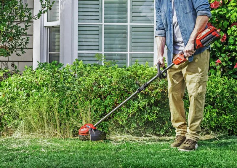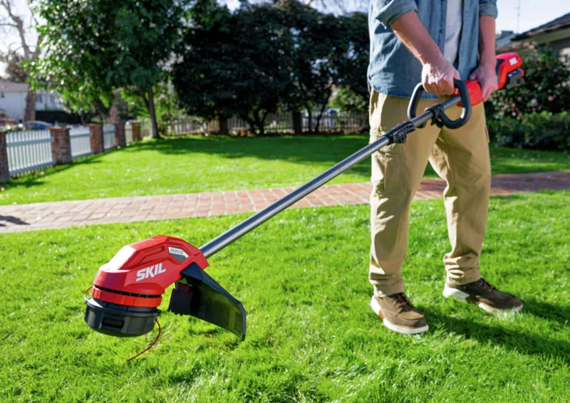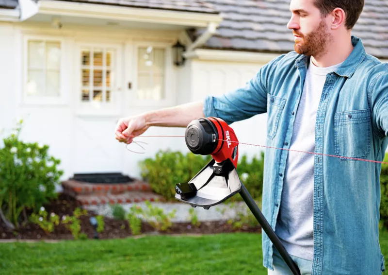 - „40V Max“ SKIL 0280 je bezuhlíková akumulátorová strunová sekačka s velkou šířkou záběru 35 m pro bezpracné vyžínání drsné trávy a plevelu.