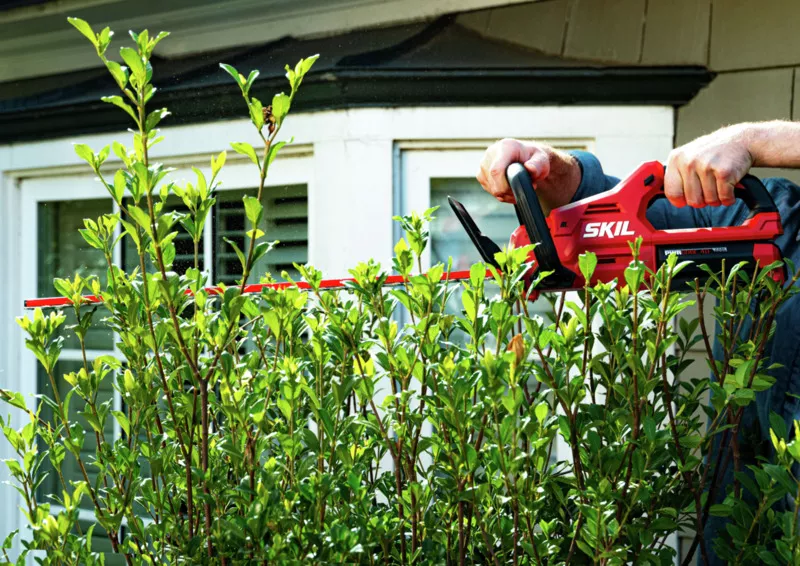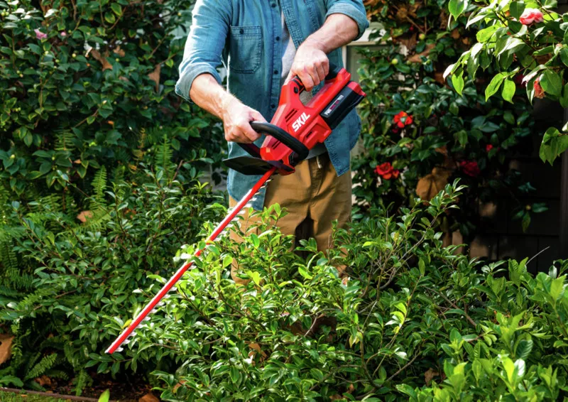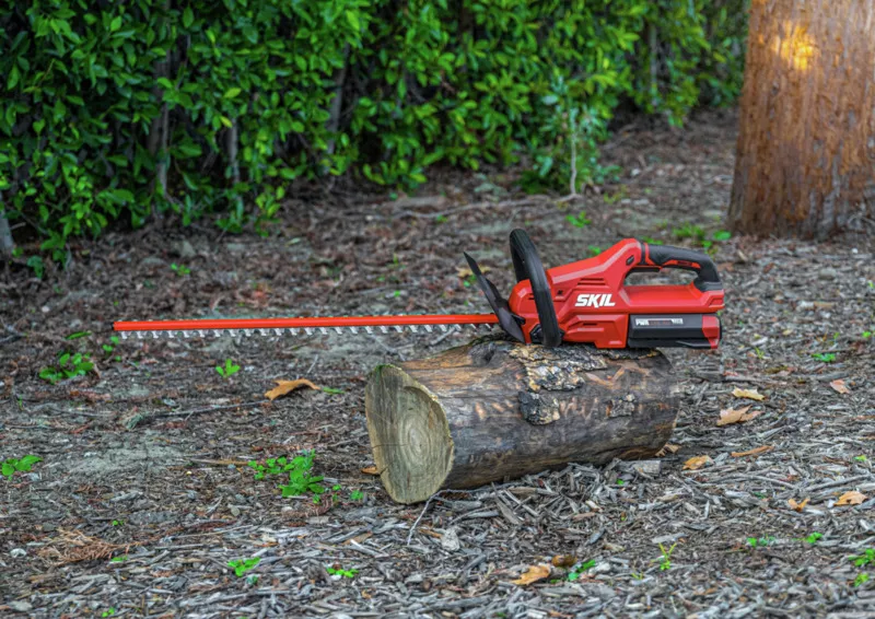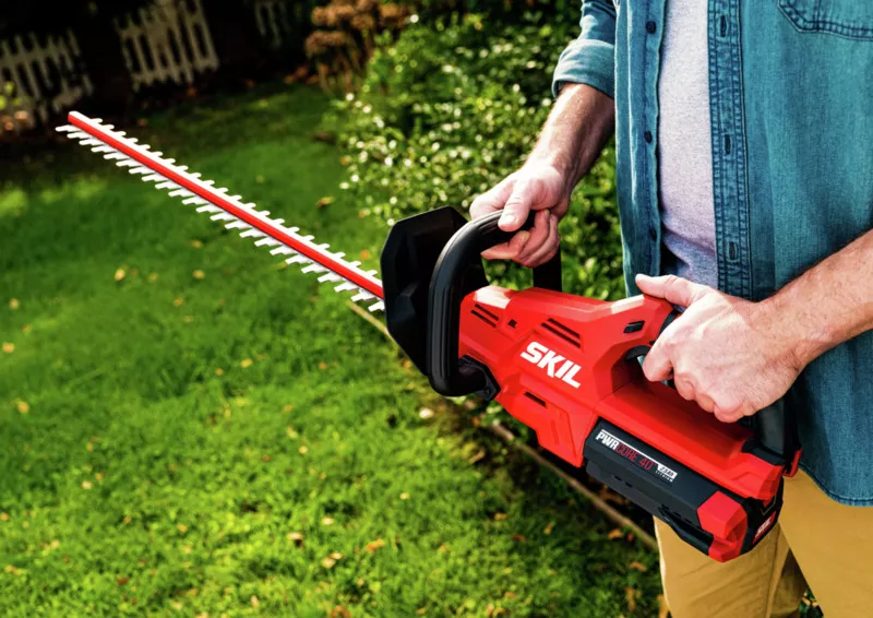 - „40V Max“ SKIL 0480 jsou bezuhlíkové akumulátorové nůžky na živý plot s čepelí 65 cm na rychlé a bezpracné stříhání živých plotů a keřů.