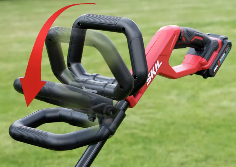 - Tato akumulátorová strunová sekačka má nastavitelnou teleskopickou rukojeť i přední madlo, takže si každý uživatel může najít správnou polohu, a maximalizovat tak pohodlí při práci.