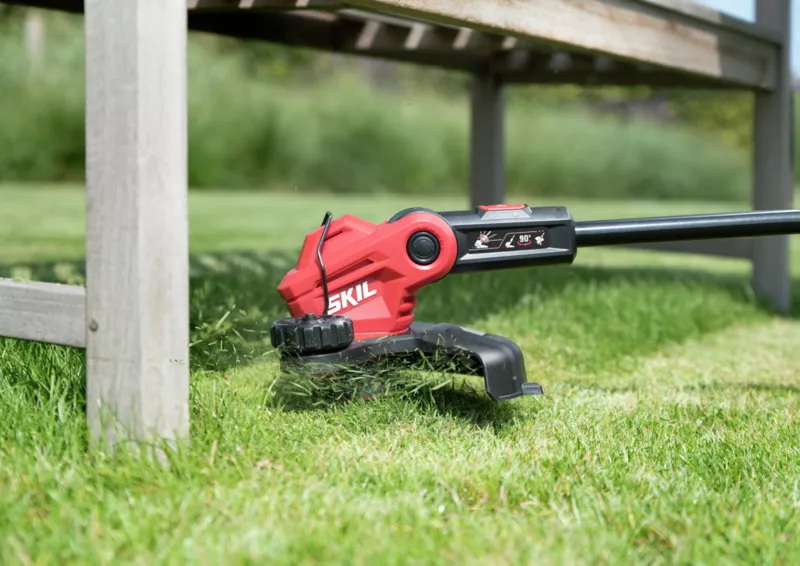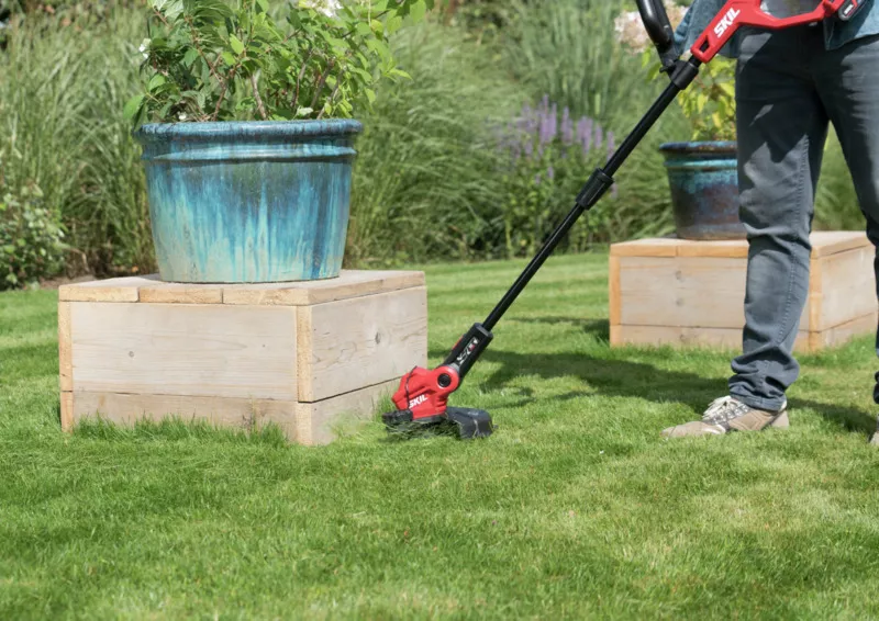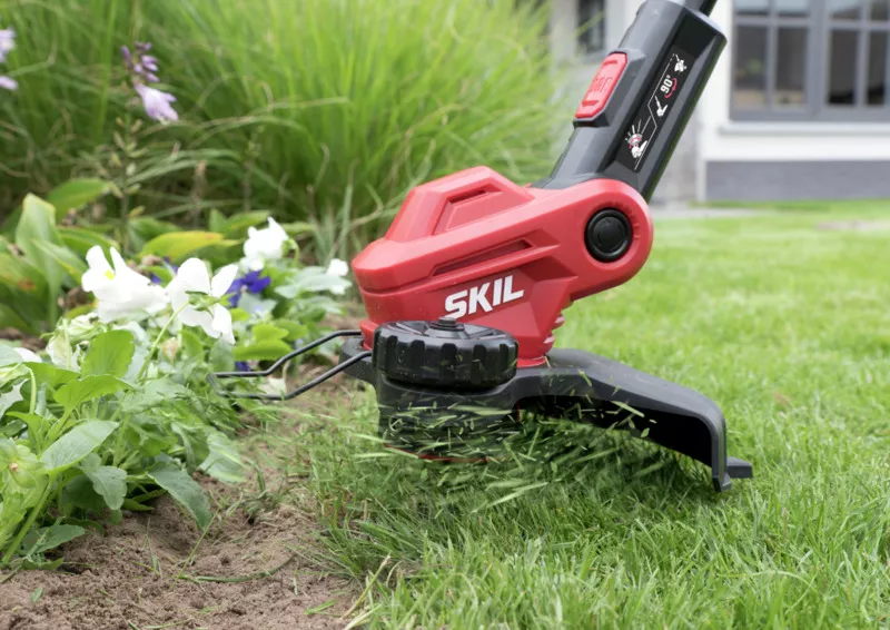 - „20V Max“ (18 V) SKIL 0230 je výkonná strunová sekačka s šířkou záběru 25 cm pro bezpracné vyžínání a začišťování podél okrajů a pěšinek.