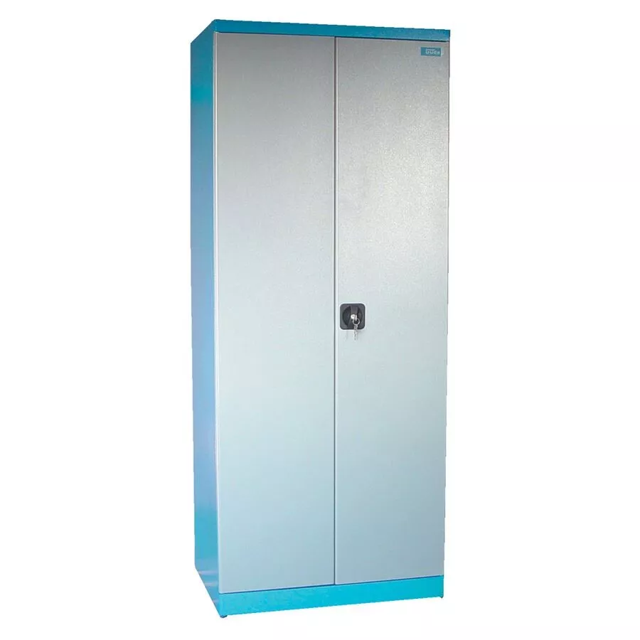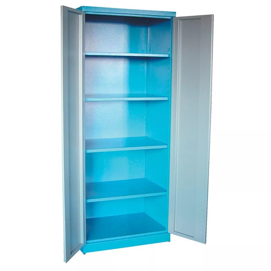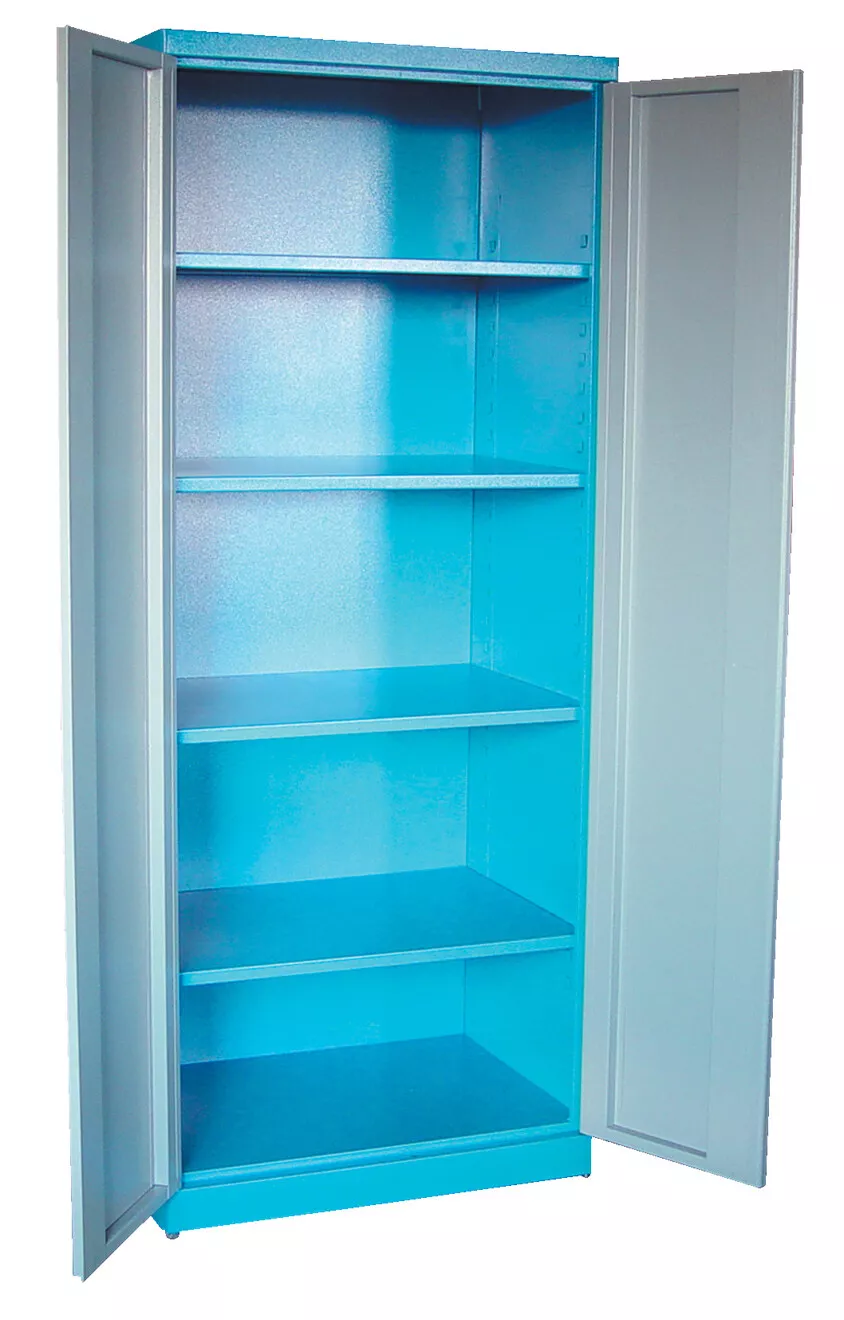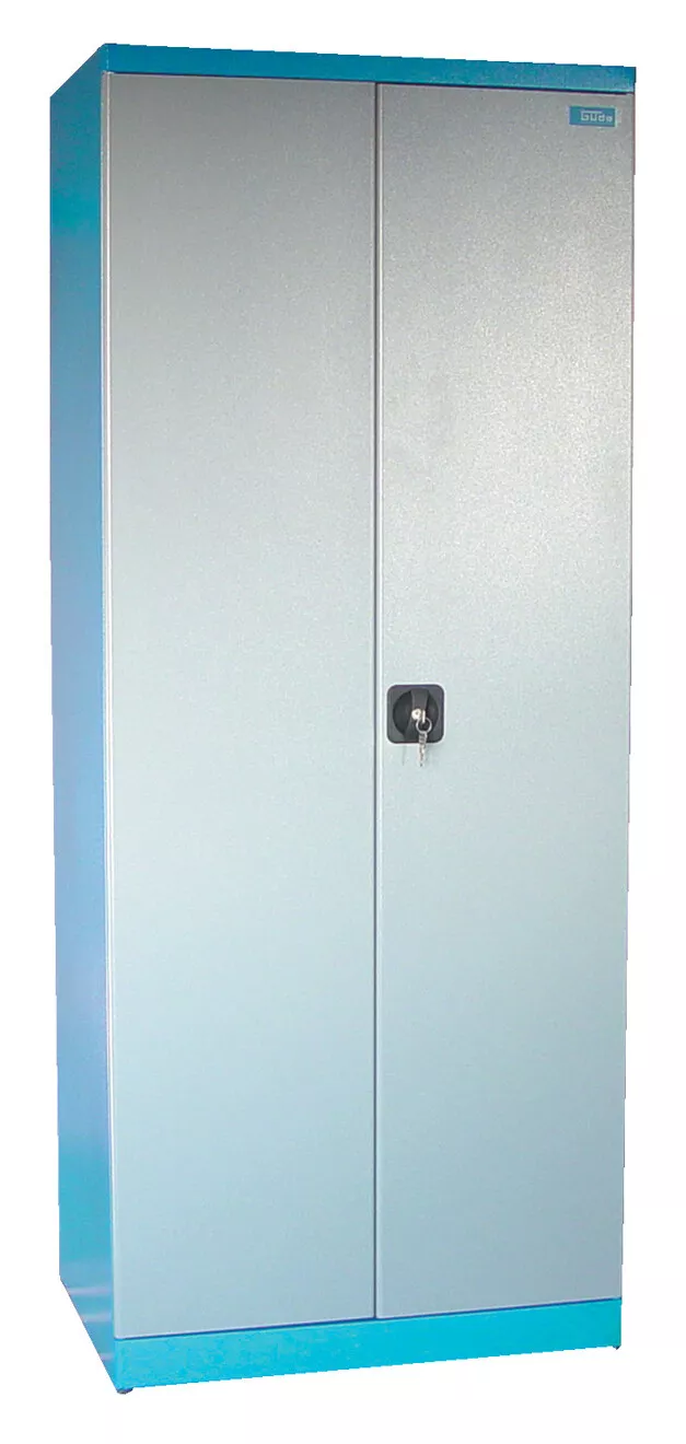 - Vybavení: dvoudveřová skříň (-> uzamykání cylindrickým/rozvorovým zámkem - dvojité uzamčení, 2 klíče); čtyři vyjímatelné police (-> volitelné nastavení výšky, nosnost: 50 kg)