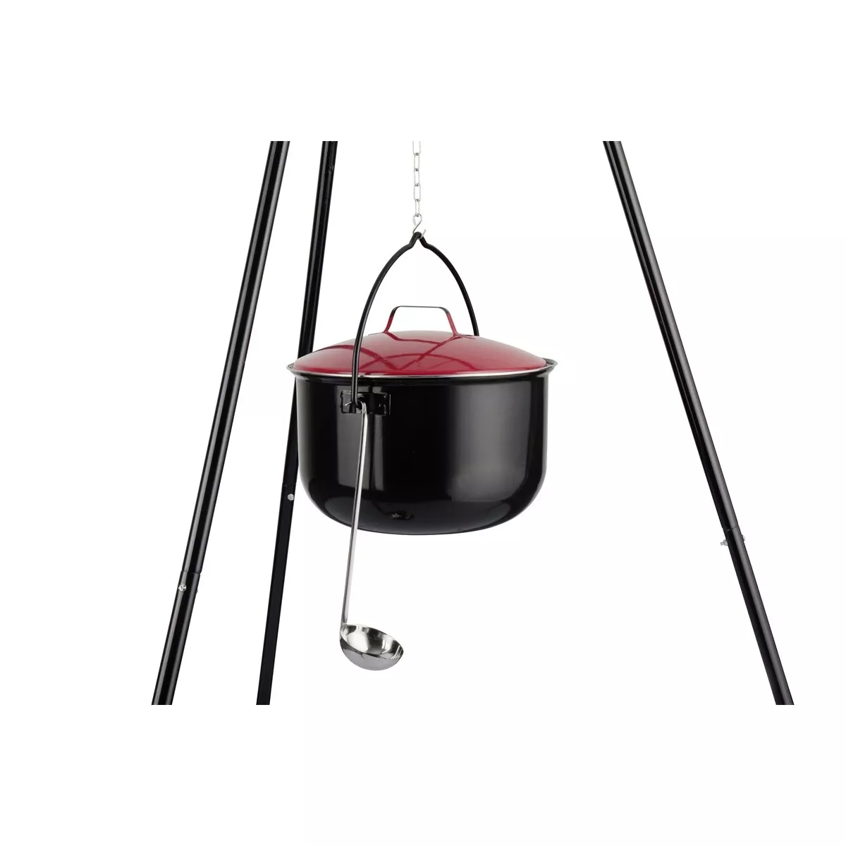 - Velmi kvalitně provedený kotlík o objemu 14 litrů je vyroben z lakované oceli. Vnitřní část je pro zvýšení životnosti opatřena tvrdou vrstvou smaltu. Kotlík se dodává se závěsným uchem, poklicí a nerezovou naběračkou. Kotlík se dodává samostatně, bez trojnožky.