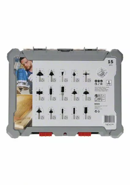 Smíšená sada tvarových fréz s vřetenem Ø 8 mm, 15 ks BOSCH 2607017472