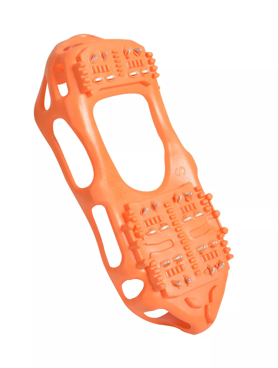 - Podrážky návleků jsou opatřeny kovovými hřeby, pokud vás zaskočí neupravený chodník s vrstvou sněhu a ledu, snadno je natáhnete přes obuv a relativně bezpečně kluzký povrch přejdete.