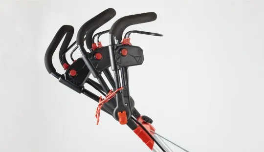 - Silný 230V/2000kW motor se spouští pomocí bezpečnostního spínače na držadle. Čistící lopatky jsou vyrobeny z tvrzené gumy s ocelovými výztuhami. Sníh je odhazován až do vzdálenosti 10 m a usměrněn vyhazovací šachtou otočnou v rozsahu 190 stupňů. Výšku držadla lze pomocí rychloupínačů snadno přizpůsobit výšce obsluhy. Praktický úchyt usnadňuje přenášení frézy. A pokud právě není potřeba, díky sklopnému držadlu jí můžete snadno skladovat na malém prostoru.