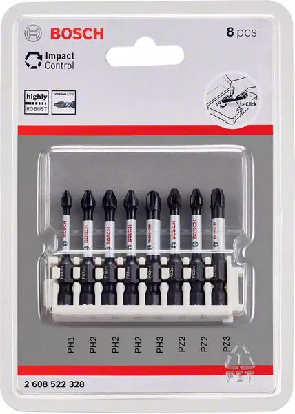 Souprava nástavců Impact Control Power Bit, 8 kusů, 1×PH1;3×PH2;1×PH3;2×PZ2;1×PZ3 BOSCH 2608522328