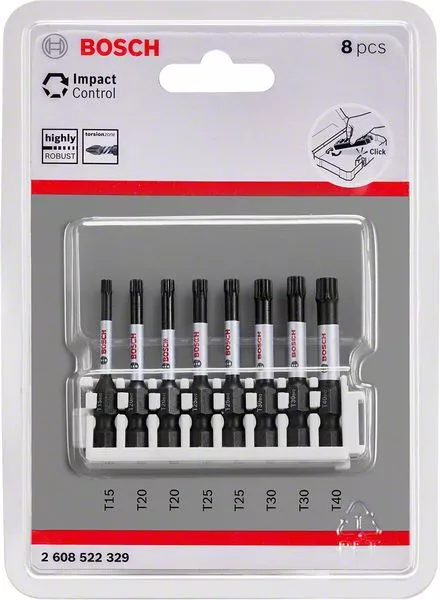 Souprava nástavců Impact Control Power Bit, 8 kusů, 1×T15;2×T20;2×T25;2×T30;1×T40 BOSCH 2608522329