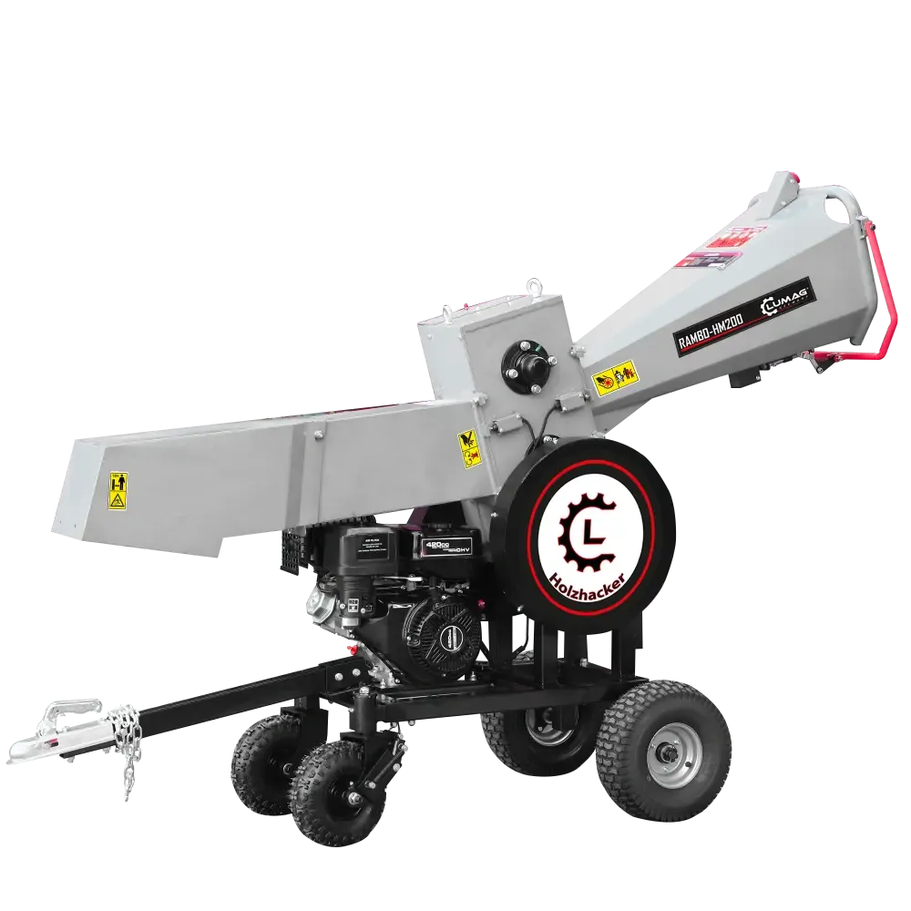 • Výkonný štěpkovač větví s benzínovým motorem Loncin 410 ccm o výkonu 11 kW.