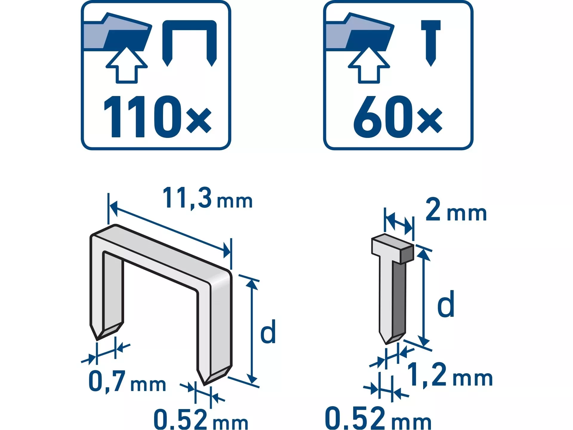 - Max. obsah zásobníku: 110 ks spon, 60 ks hřebíků