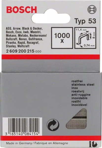 Sponky do sponkovačky z tenkého drátu, typ 53, nerezové BOSCH 2609200215