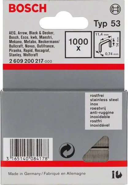 Sponky do sponkovačky z tenkého drátu, typ 53, nerezové BOSCH 2609200217