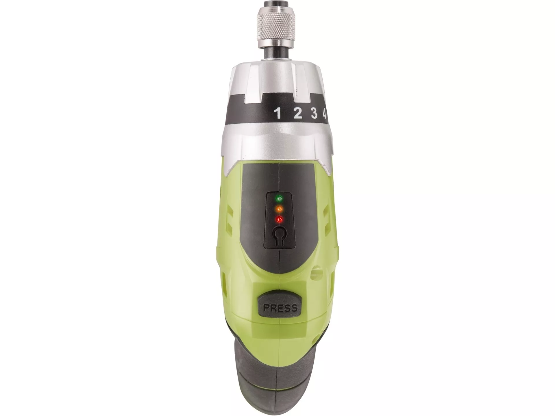 - Praktický aku šroubovák určený pro utahování či povolování šroubů a matic. Při použití vrtáků se šestihrannou stopkou můžete i vrtat. Díky snadnému nastavení momentů při utahování už nikdy nepoškodíte šrouby nebo závity a s otočnou rukojetí se dostanete do méně přístupných míst. Aku šroubovák je vybaven brzdou rotoru, proto ho lze omezeně použít i při vybité baterii. Díky Li-ion akumulátoru je možné šroubovák kdykoliv dobíjet, aniž by se tím snižovala kapacita akumulátoru. Li-ion akumulátor ztrácí energii vlivem samovybíjení velmi pomalu a vydrží dlouho nabitý.