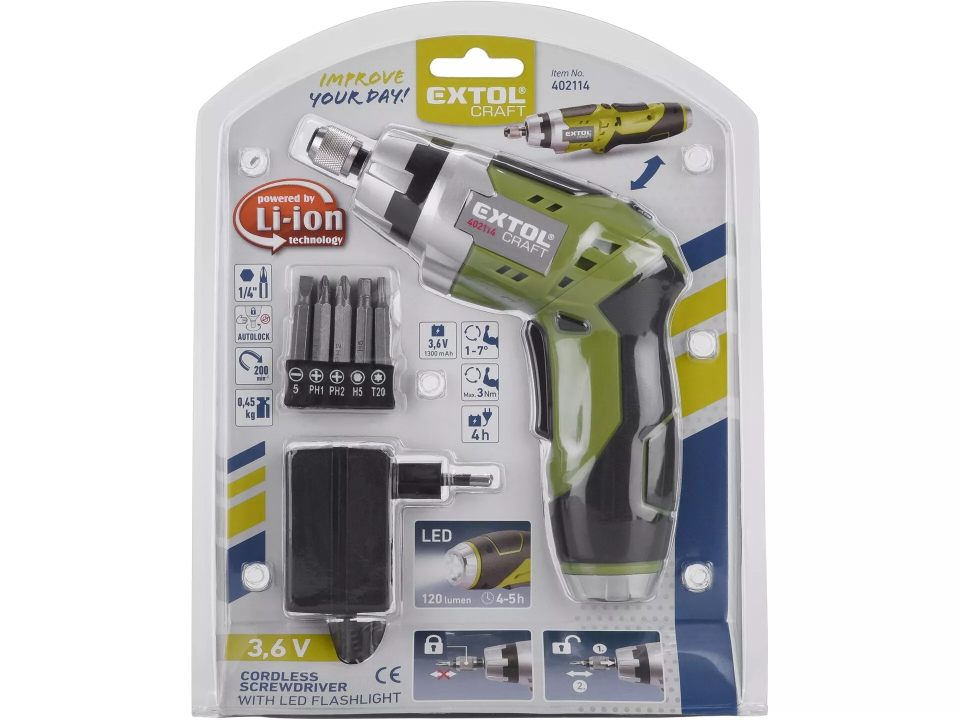 Šroubovák aku 3,6v li-ion, 1300mah se svítilnou EXTOL CRAFT 402114