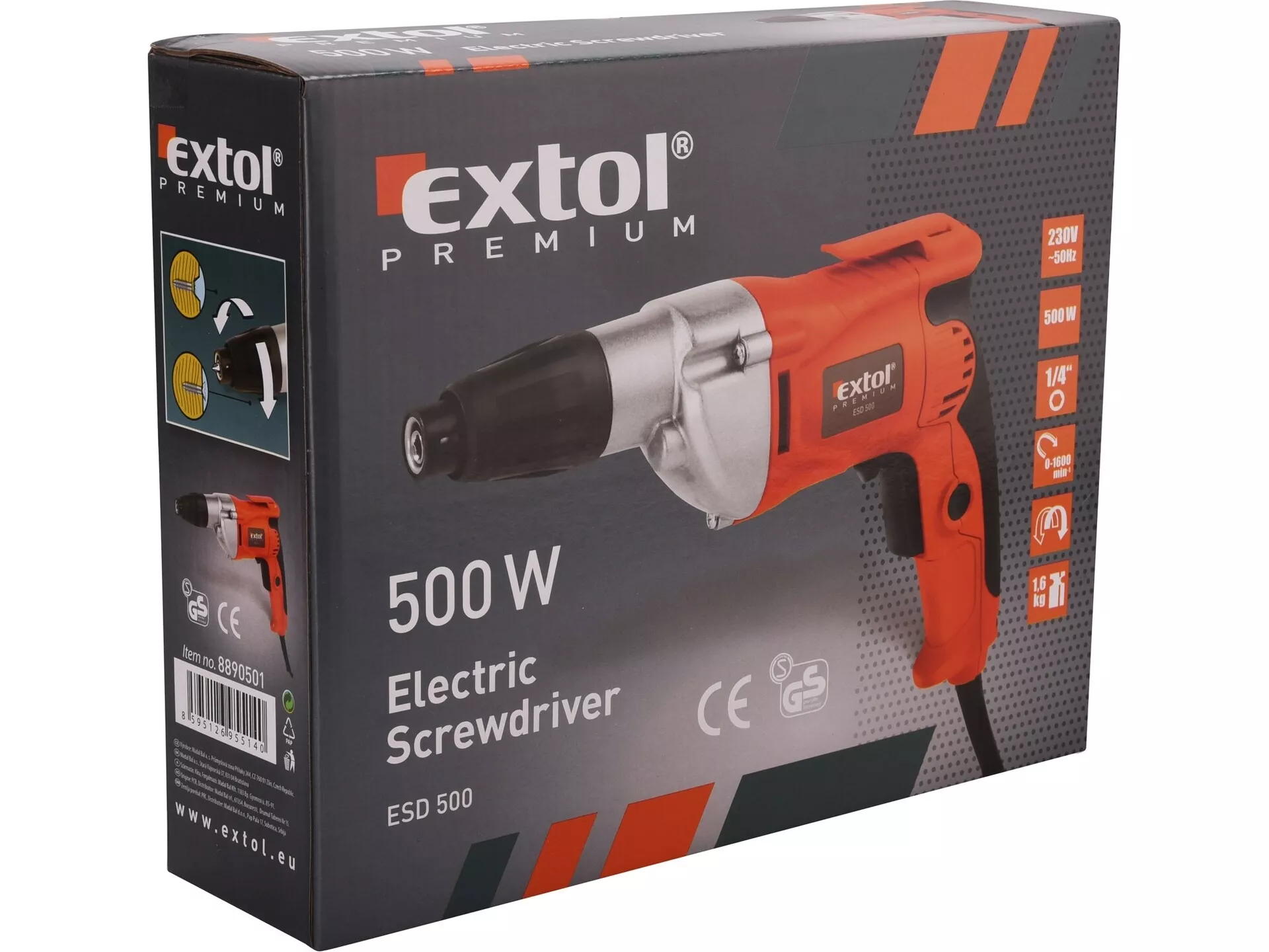Šroubovák elektrický, 500w, 1/4", 6nm EXTOL PREMIUM 8890501