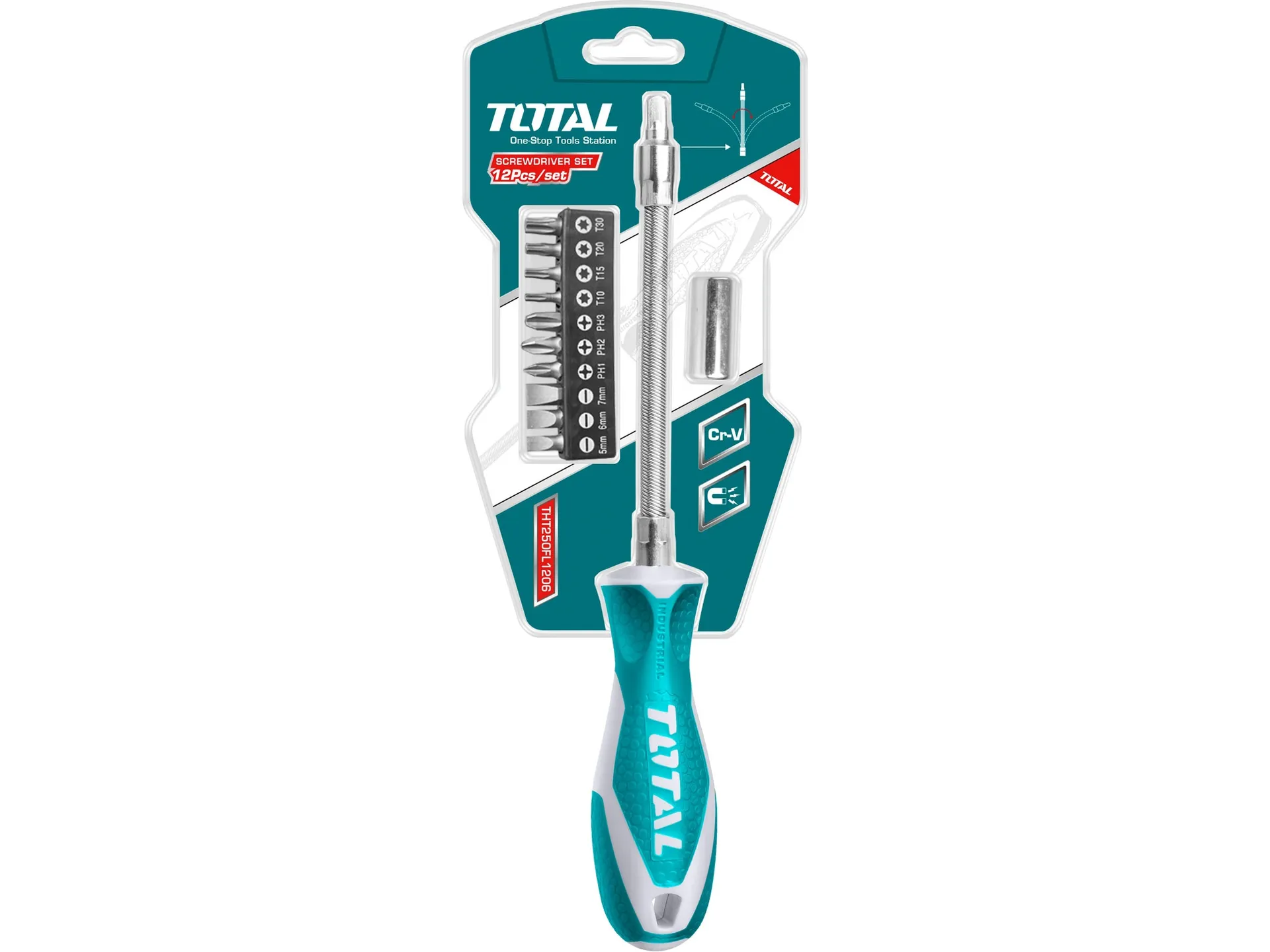 Šroubovák s ohebnou hřídelí a hroty, sada 12ks, crv TOTAL THT250FL1206