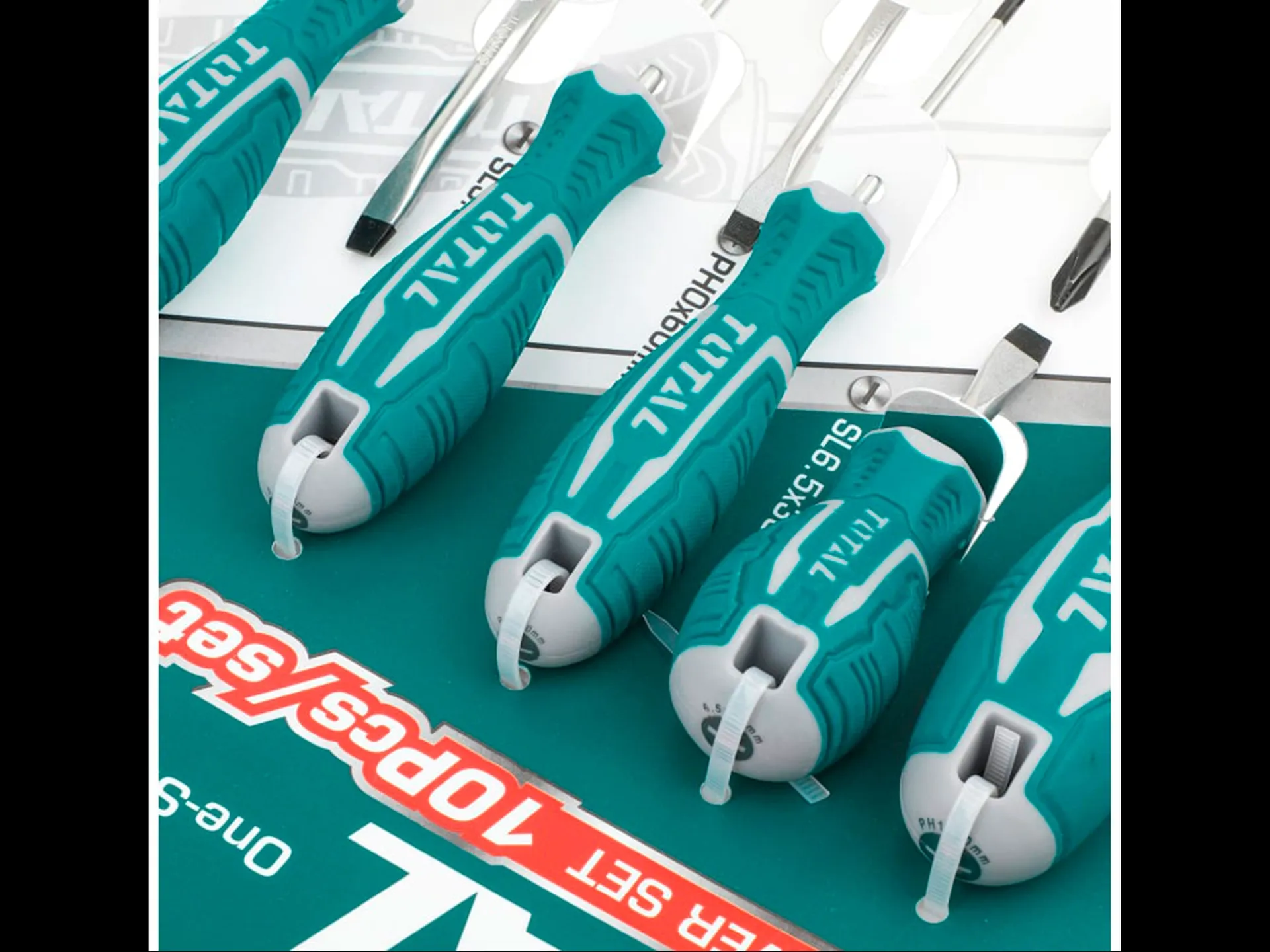 - nový design rukojetí TOTAL 6ks plochých šroubováku a 4ks šroubováků křížových kvalitní chrom vanadová ocel