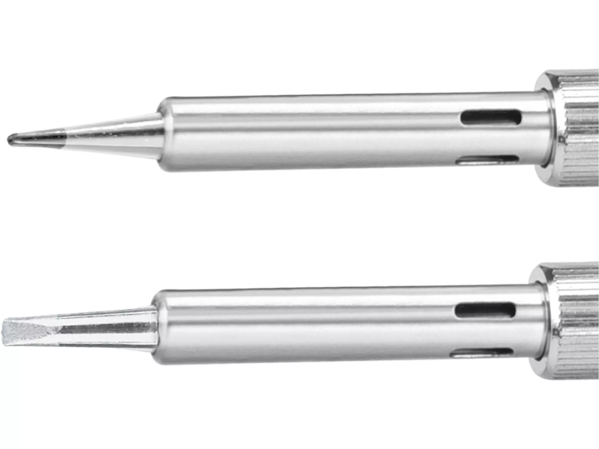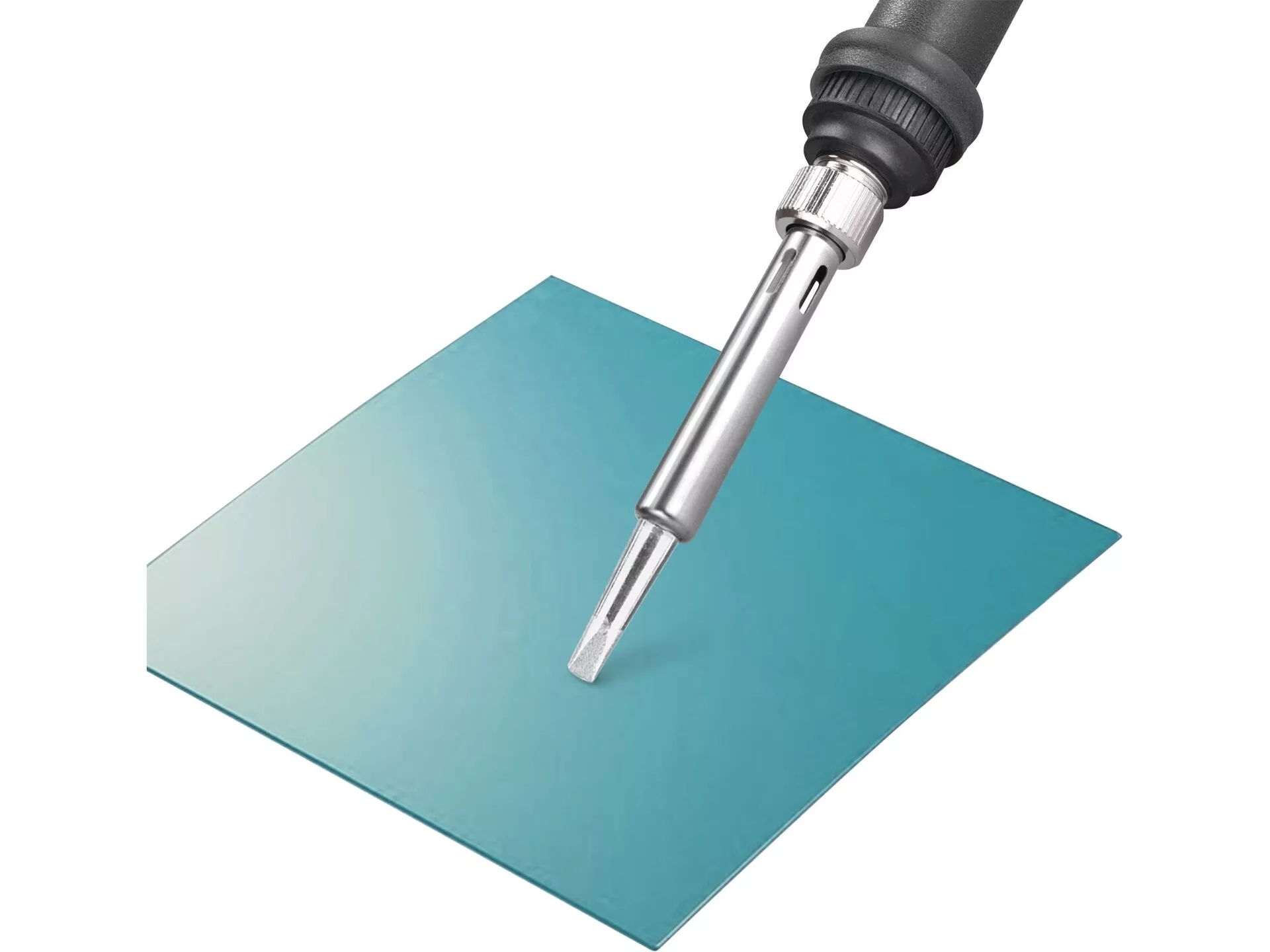 - Výkonná mikroprocesorová pájecí stanice s teplotním rozsahem 200-450°C, s LCD displejem a jemnou regulací teploty ±1°C je určena pro profesionální použití při pájení vyžadujícím preciznost a přesnou regulaci teploty pájení – zejména v elektronice a bižuterii, kde se neklade přílišný požadavek na odolnost vůči mechanickému namáhání, ale na přesnost provedení. Pájecí stanice zajišťuje velice rychlé vyhřátí pájecího hrotu na nastavenou teplotu. Mikroprocesorová elektronika neustále snímá teplotu pájecího hrotu a okamžitě reaguje na změny teploty (+/-) čímž udržuje konstantní teplotu, aniž by docházelo k teplotním výkyvům, což je důležité pro pájení citlivých součástek. V případě použití jiného typu pájecího hrotu lze zjištěný rozdíl mezi dosaženou teplotou na hrotu a nastavenou teplotou na displeji vyrovnat funkcí rekalibrace.