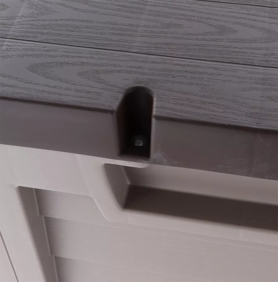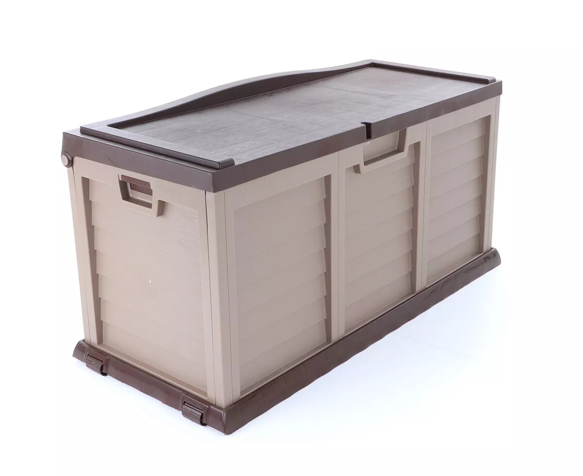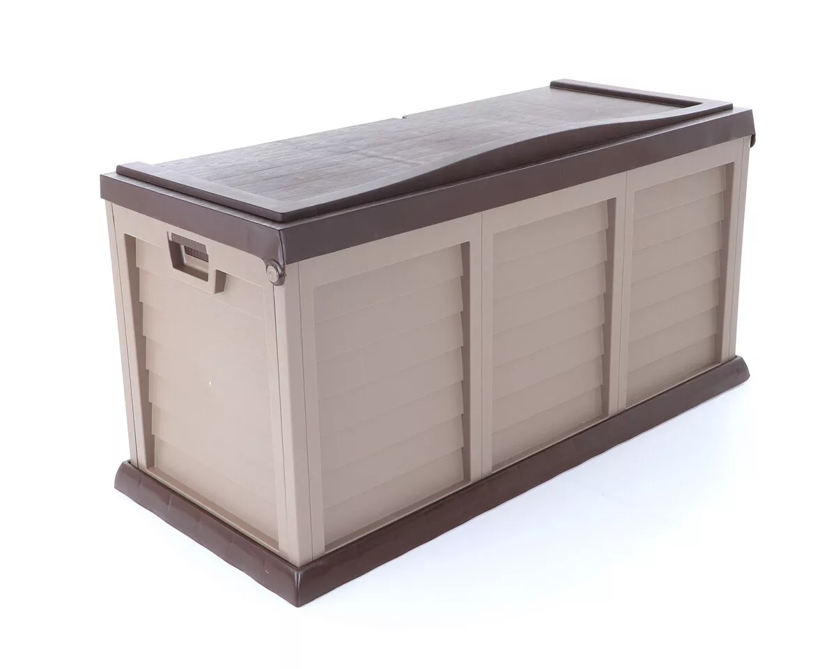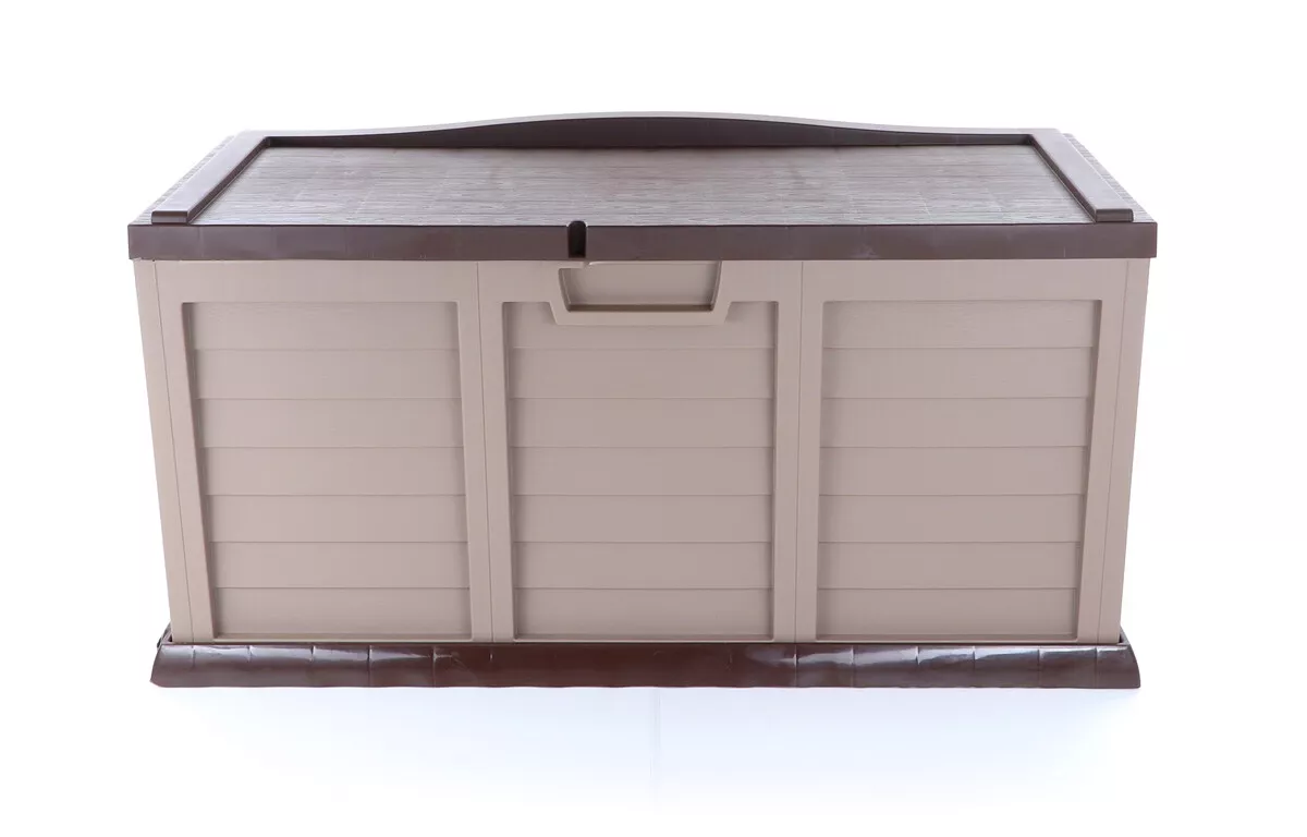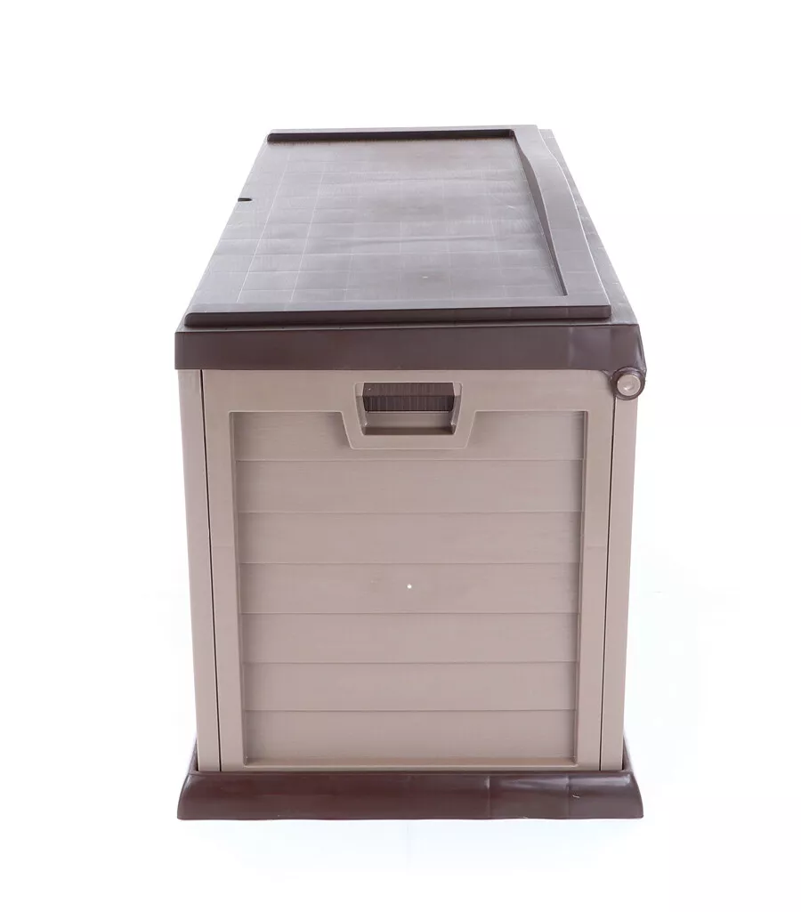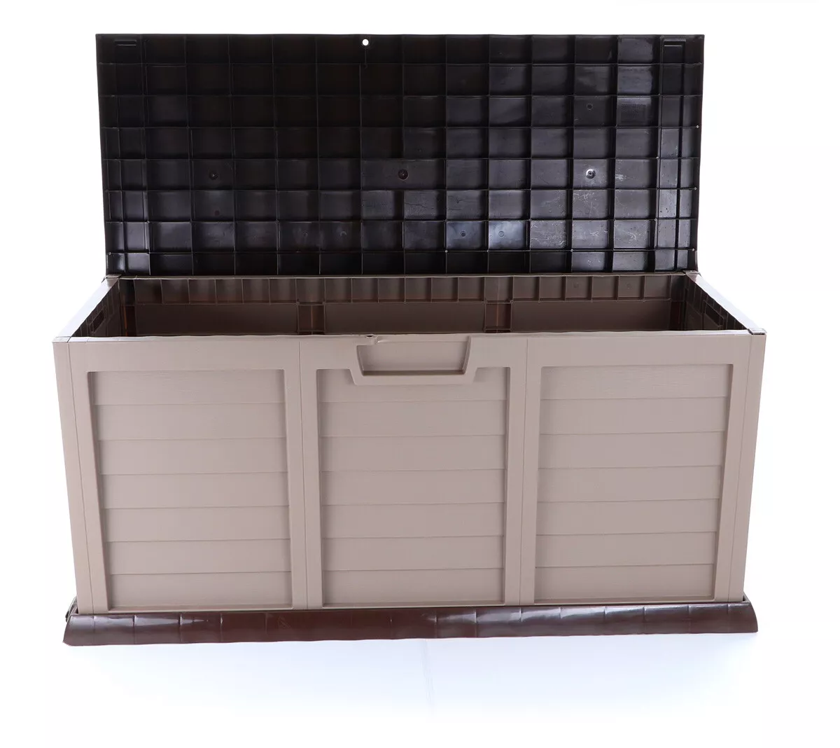 - Velmi praktický úložný box s velkým objemem, který je praktický na zahrady, terasy, balkóny, do garáže nebo zimní zahrady na uskladnění podušek ze zahradního nábytku, hraček apod. Lze jej umístit do exteriéru i interiéru.